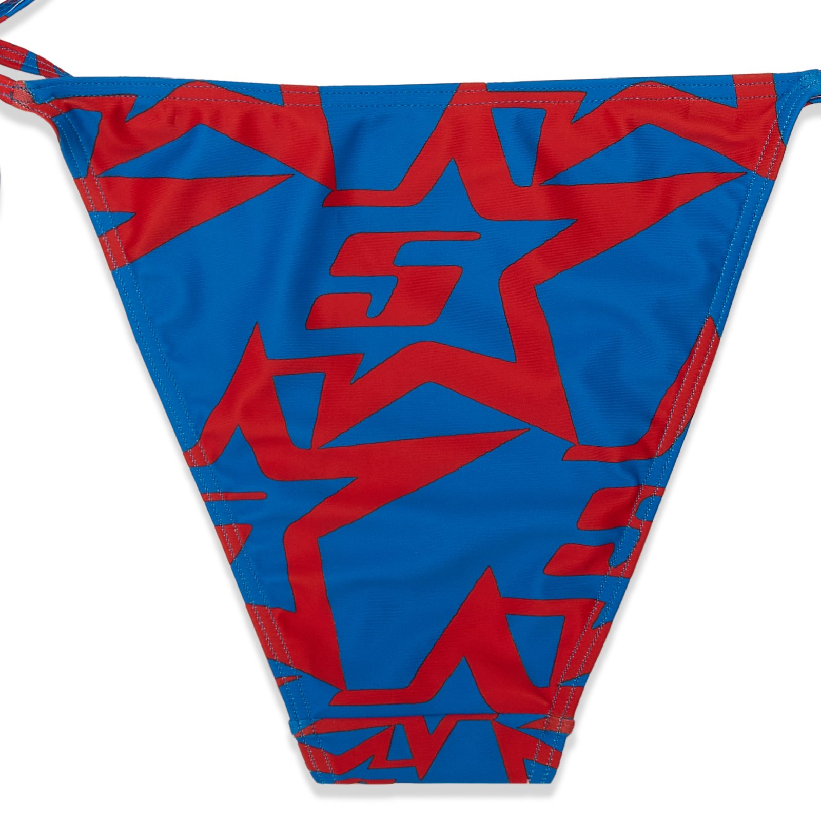 Sold as set (triangle top/bottom). 5 star printed. Rope ties for adjustable fit. Stretch nylon jersey material.