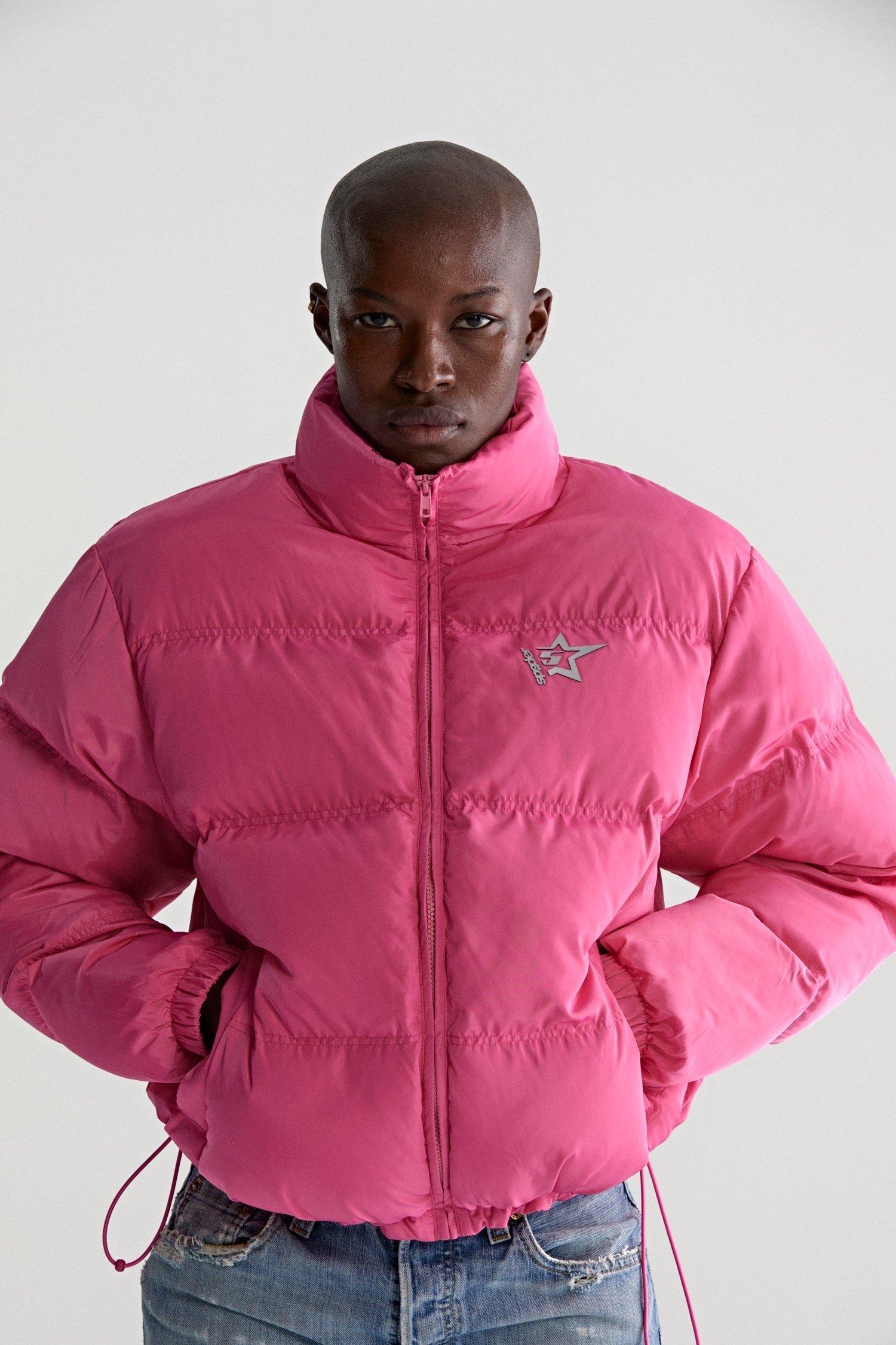 Polyester fill puffer jacket. SP5DER logo on back and star emblem on the chest. Elasticized cuffs and a high collar. Full front zip closure and side pockets.