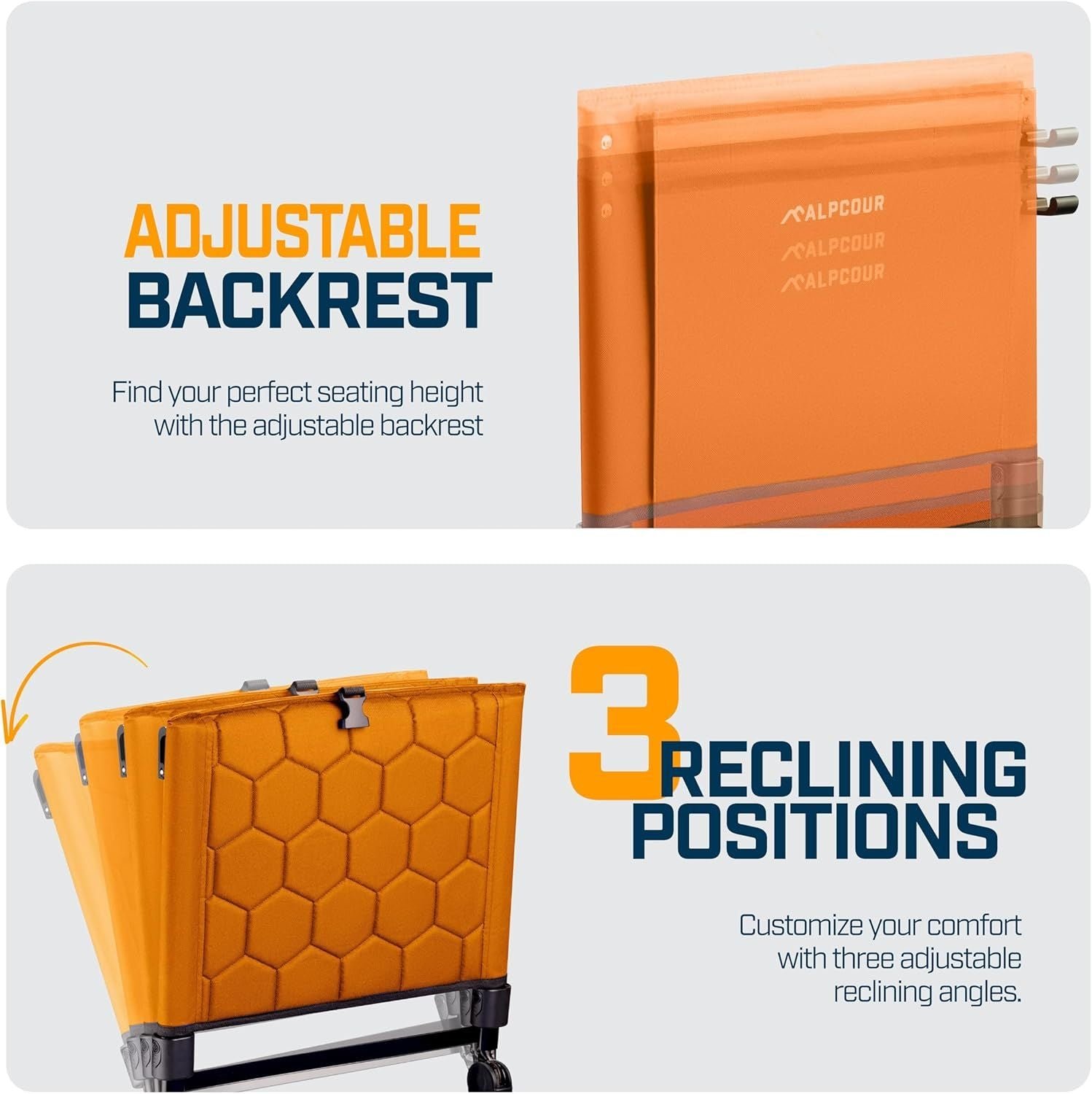Features 3 reclining positions and a padded backrest, providing personalized comfort whether at a stadium, concert, or outdoor adventure.