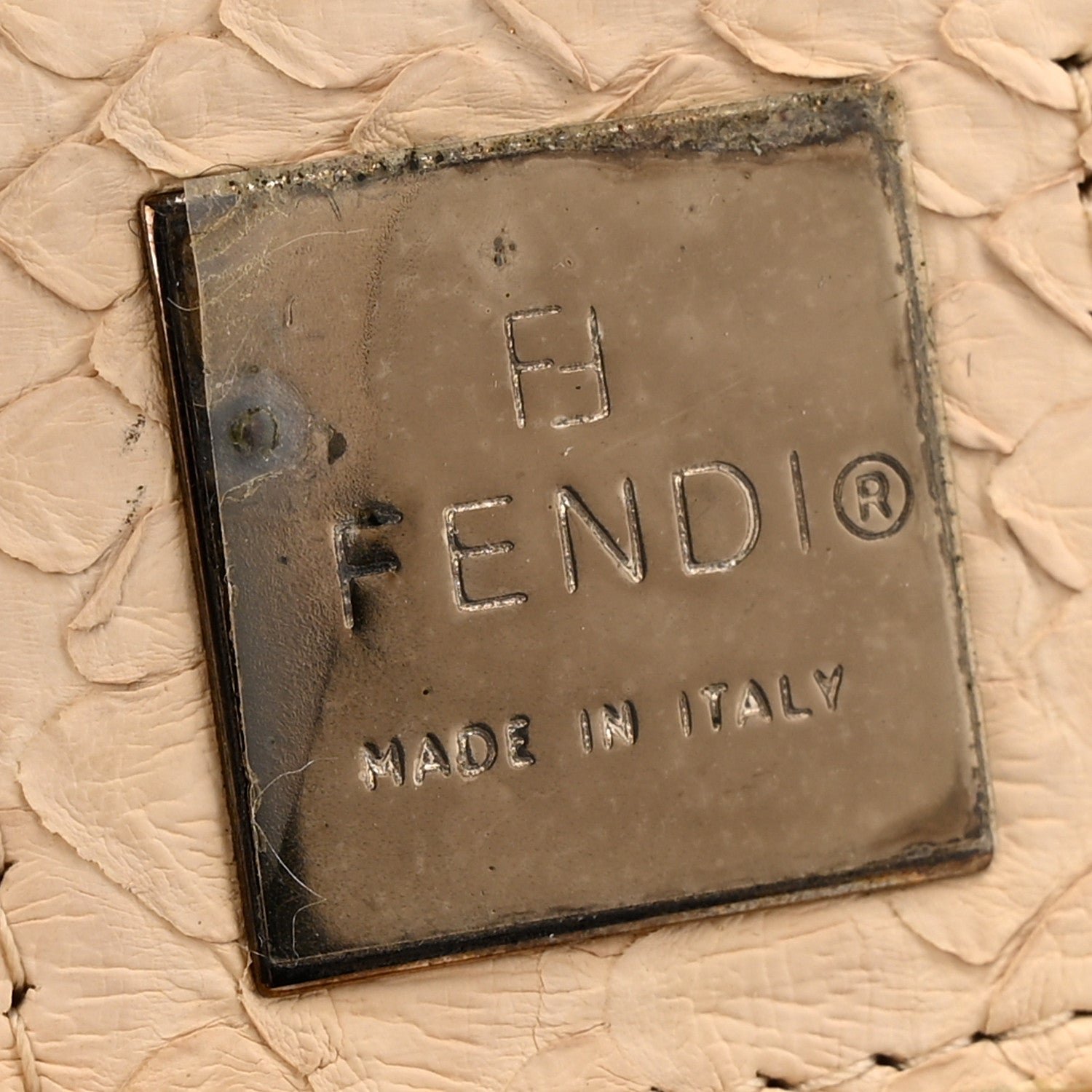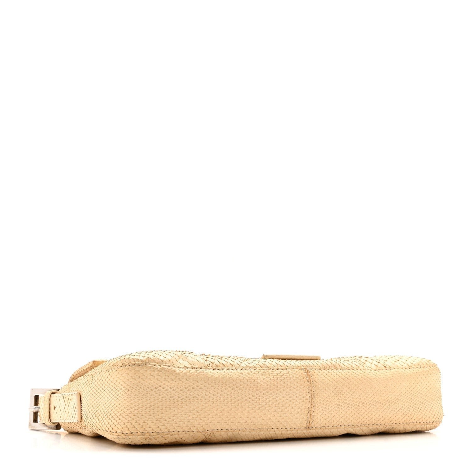 A collector’s piece from the House of Fendi, this Baguette bag is meticulously crafted from premium python snakeskin in a soft, light beige hue. The natural variations of the python scales provide a unique, organic texture that elevates the bag’s minimalist rectangular shape.