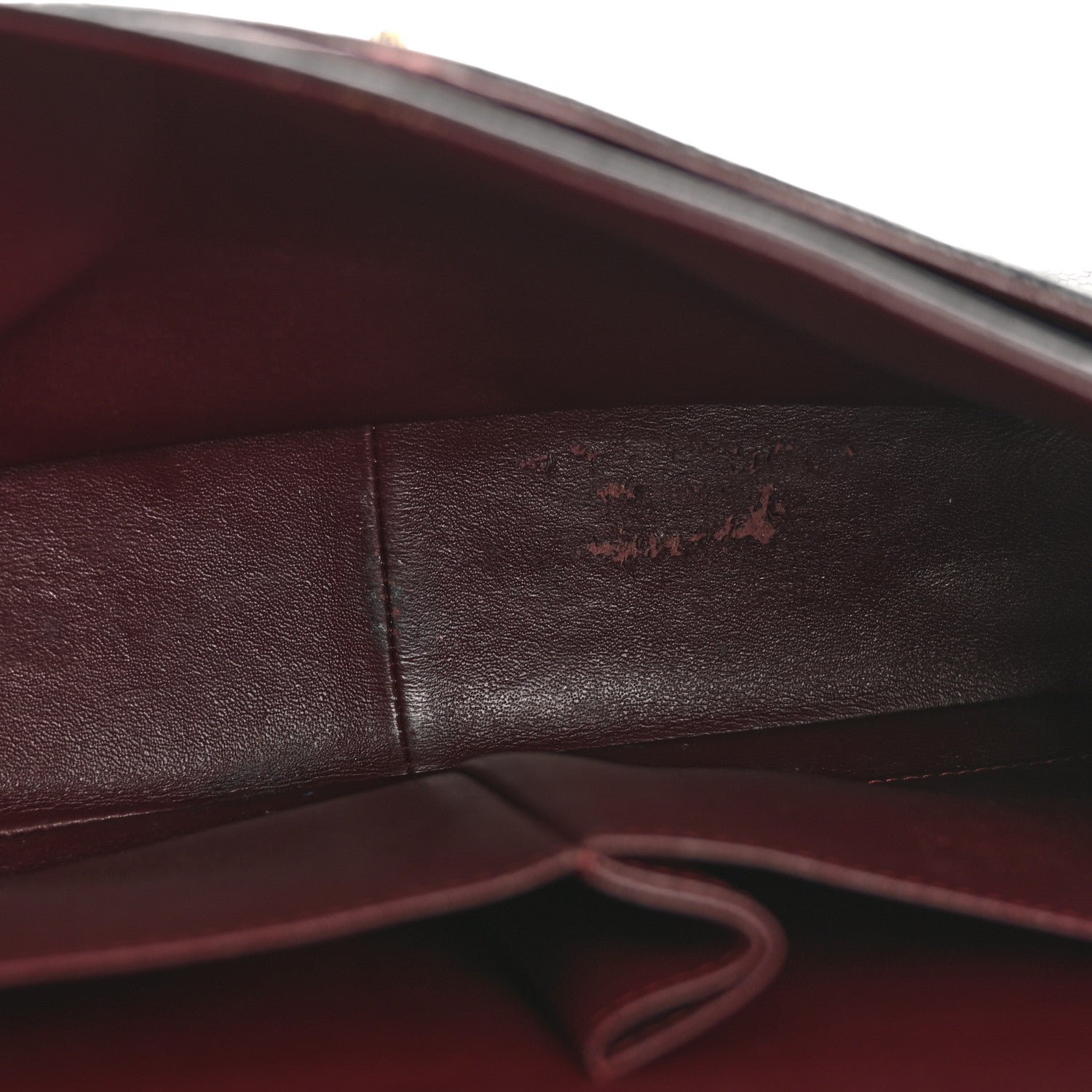 Double Flap Configuration: The “Double Flap” design features a secondary internal flap that opens to reveal a rich burgundy leather lining. The interior organization is highly specific, featuring: