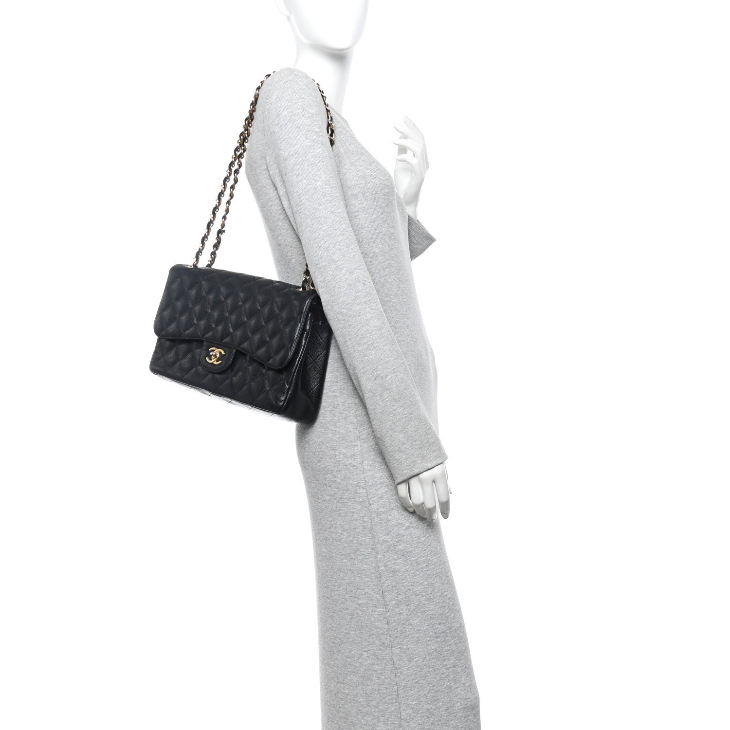 Design & Material: This iconic shoulder bag is meticulously crafted from black caviar leather (grained calfskin), a signature material prized for its pebbled texture and extraordinary resistance to scratches. It features the brand’s legendary diamond-quilted stitching across its structured silhouette.