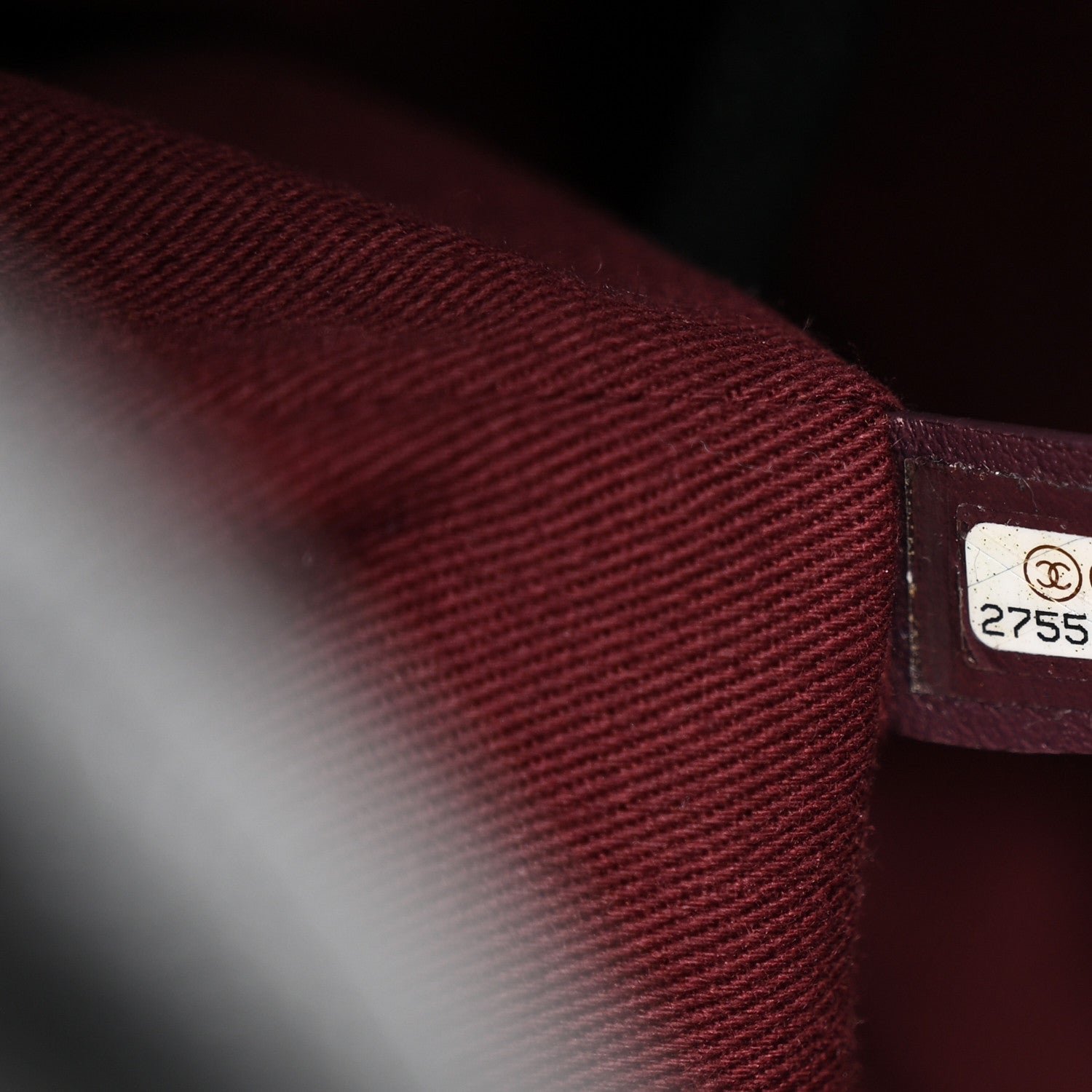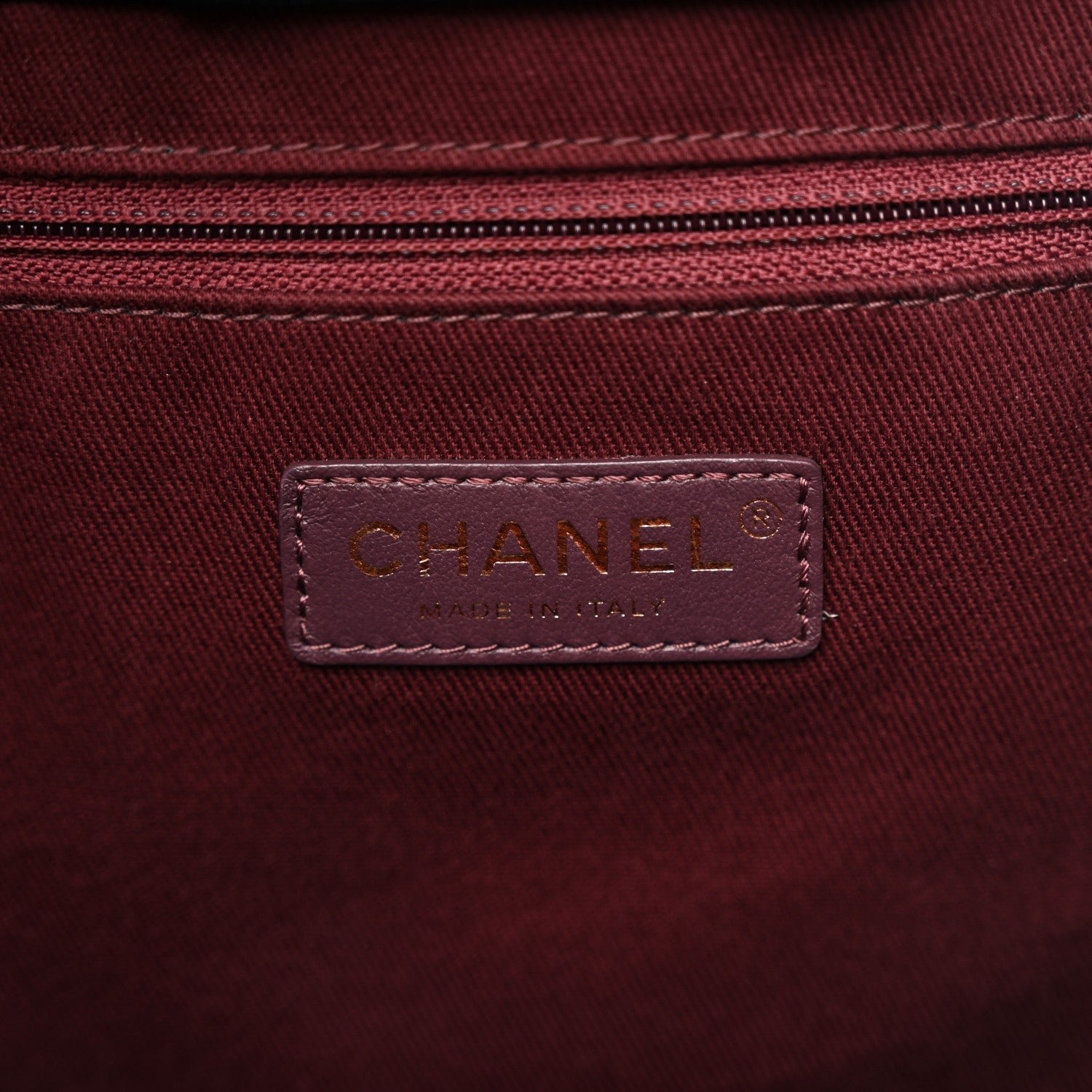 Hardware: It is accented with polished gold-tone or aged gold-tone metal, including the prominent Chanel CC logo on the front.
