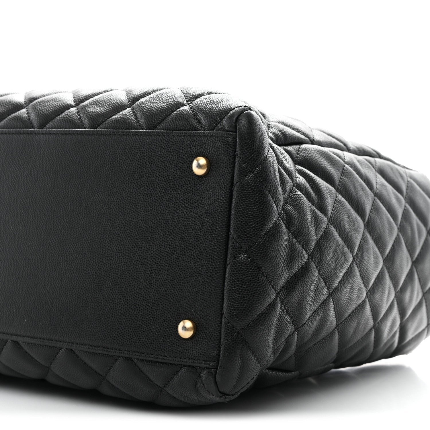 Material: The exterior is crafted from durable black caviar leather (grained calfskin) with signature diamond quilting.