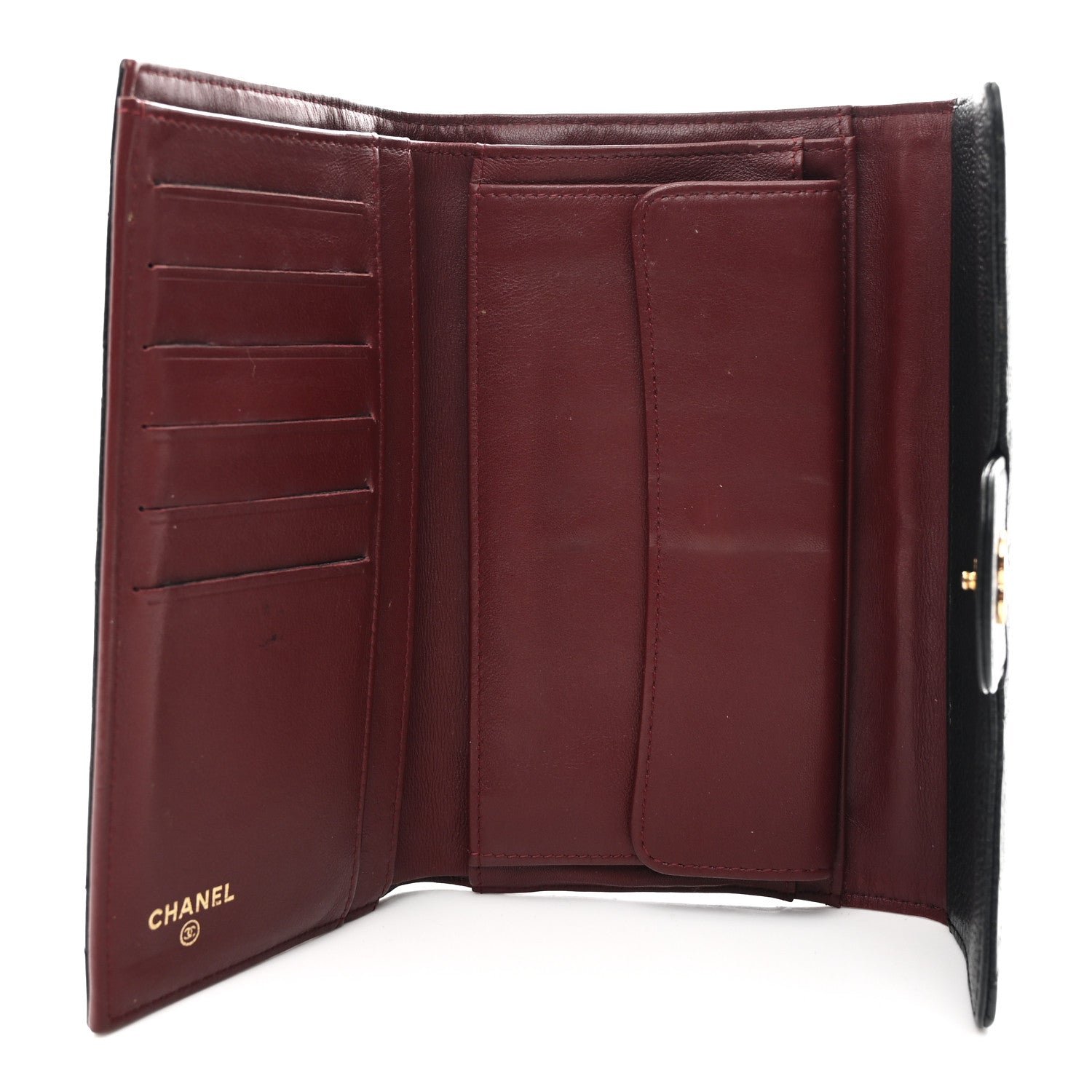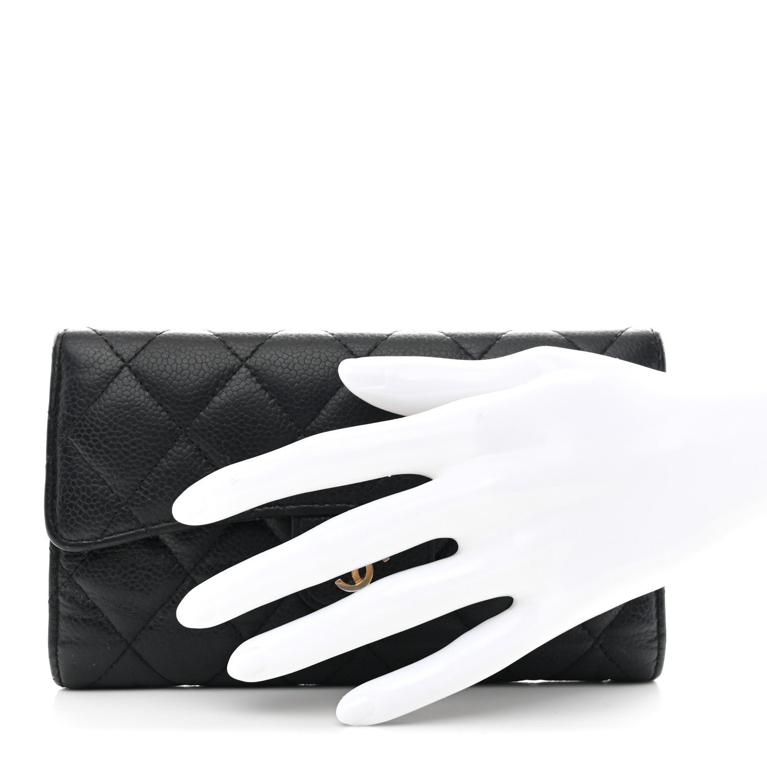 Design & Material: This continental-style wallet is meticulously crafted from signature black caviar leather (grained calfskin), a material prized for its pebbled texture and extraordinary resistance to scratches. It features the brand’s legendary diamond-quilted stitching across the entire exterior.