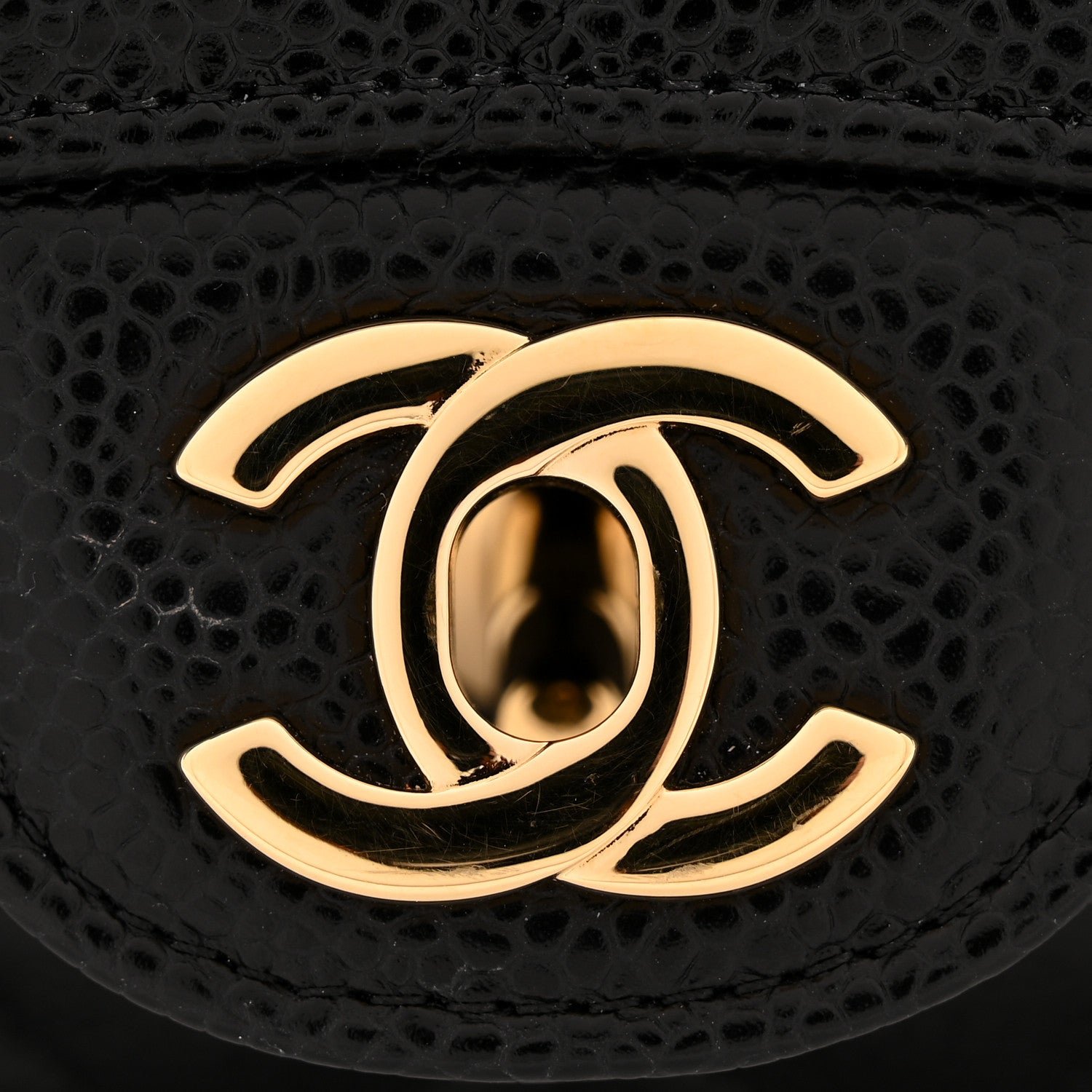 • Hardware and Closure: The front flap is secured by the iconic polished gold-tone metal interlocking CC turn-lock closure.
