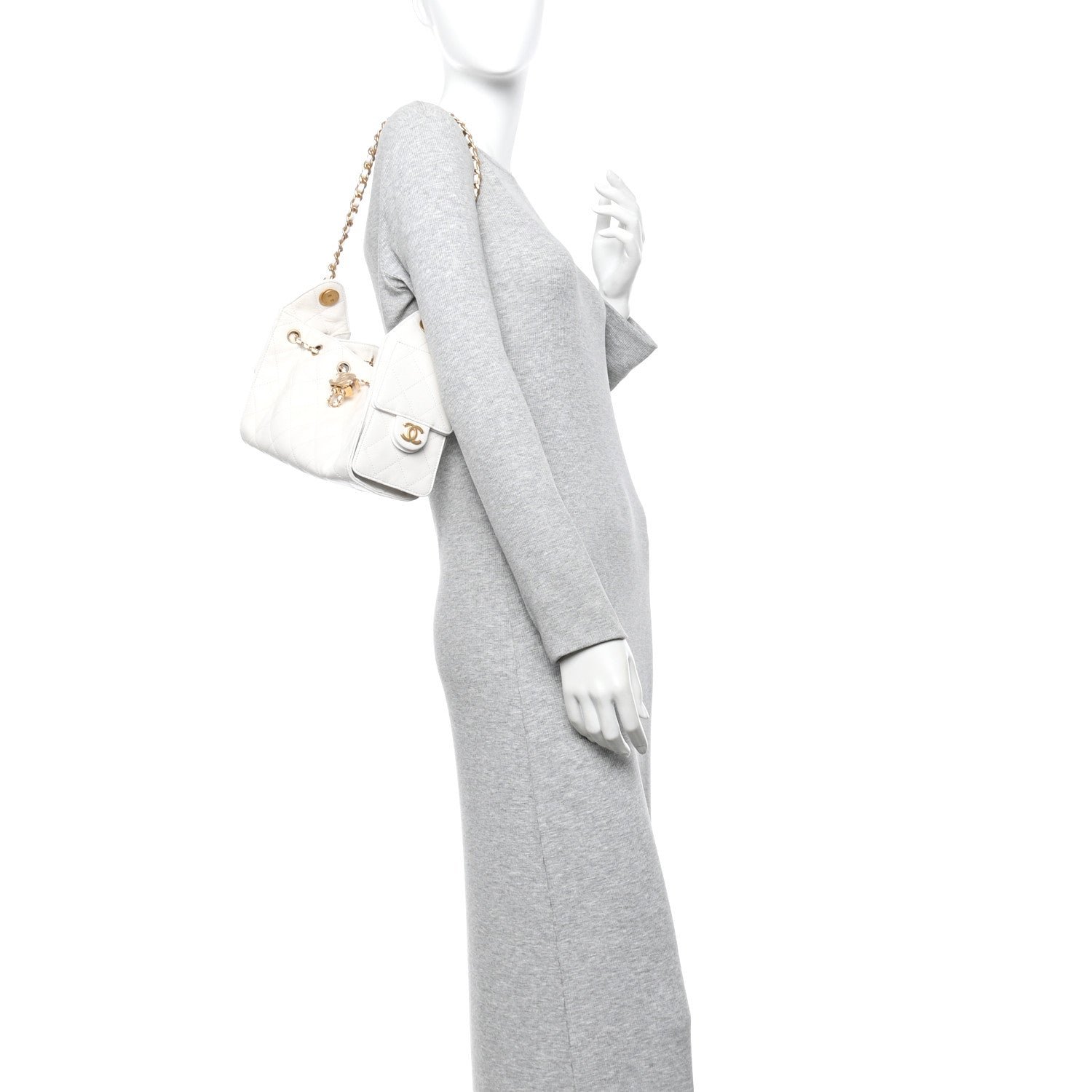 Exterior Pockets: A defining feature is the inclusion of two functional side pockets with diamond quilting and decorative CC turn-lock details, specifically designed to fit essentials like a smartphone.