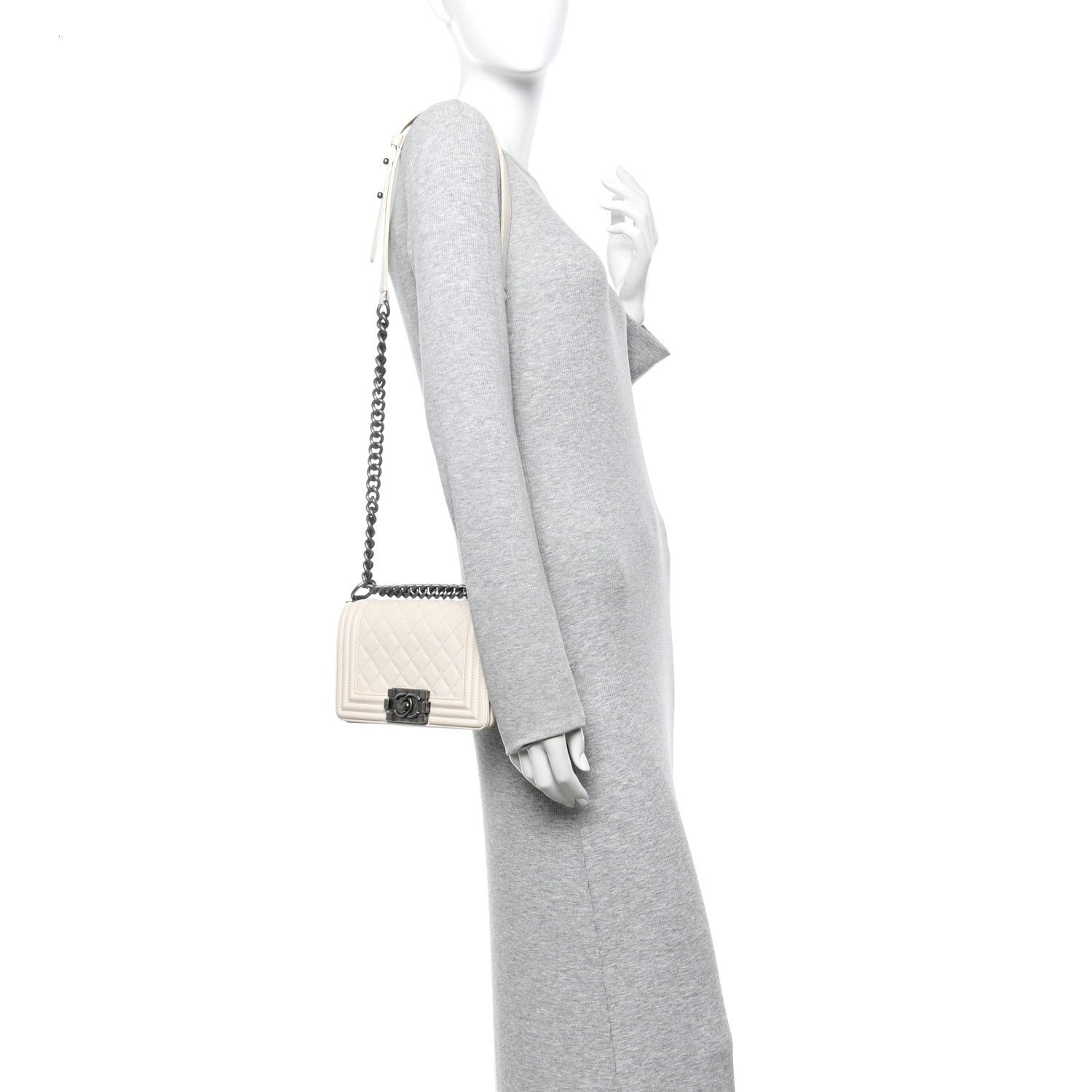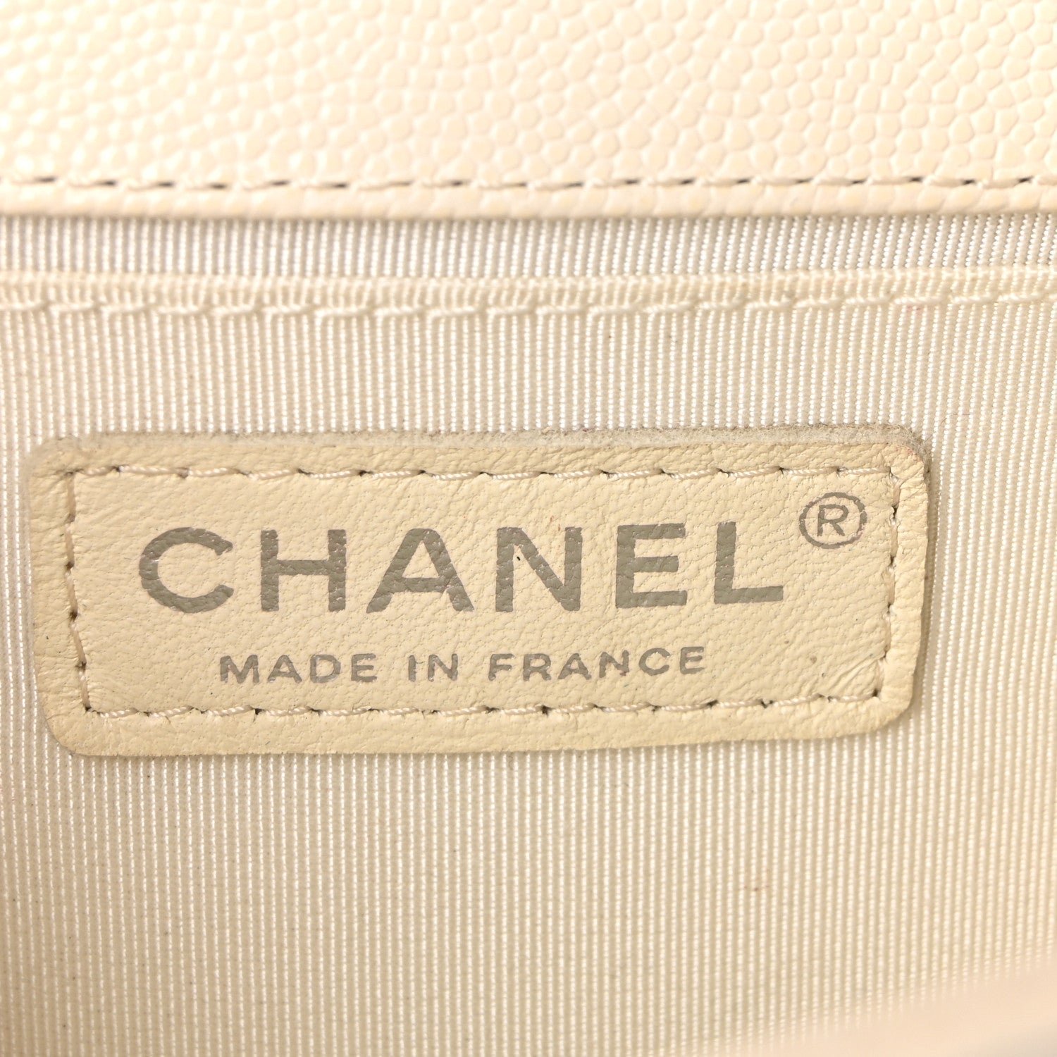 The Chanel Caviar Quilted Small Boy Flap in White with Silver Hardware is a striking, edgy alternative to the Classic Flap, blending the House’s heritage with a more modern “rock-chic” aesthetic. Named after Gabrielle Chanel’s great love, Arthur “Boy” Capel, this silhouette is characterized by its linear, boxy frame and bold, chunky hardware.