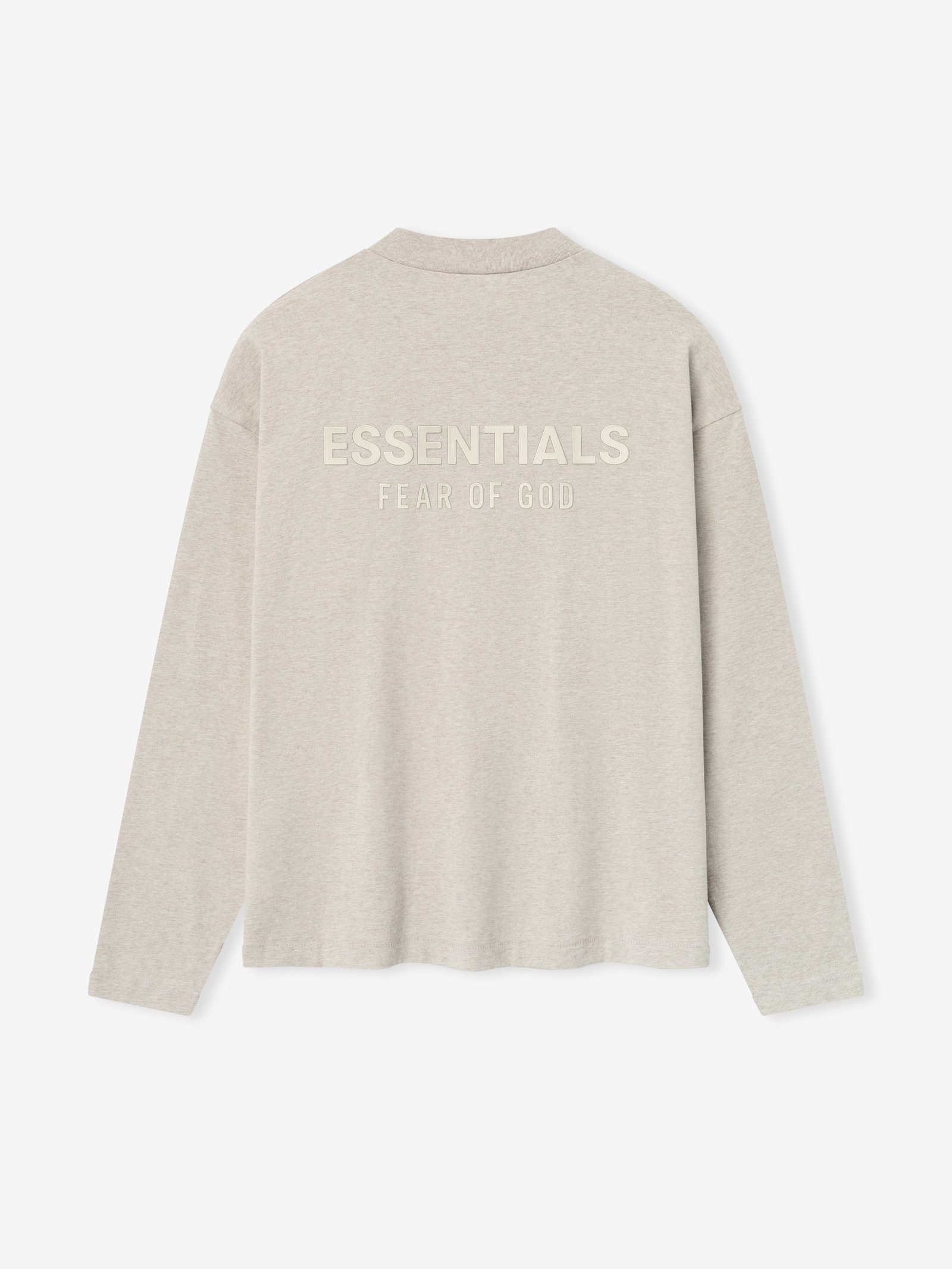 The Classic Long Sleeve Tee is made from medium-weight 100% cotton jersey. The rib-knit crewneck tee features a classic fit with signature Fear of God relaxed proportions for everyday wear. Branding includes a “Fear of God Essentials” rubberized label at the center front and a new “Essentials Fear of God” beveled metallic logo across the back.