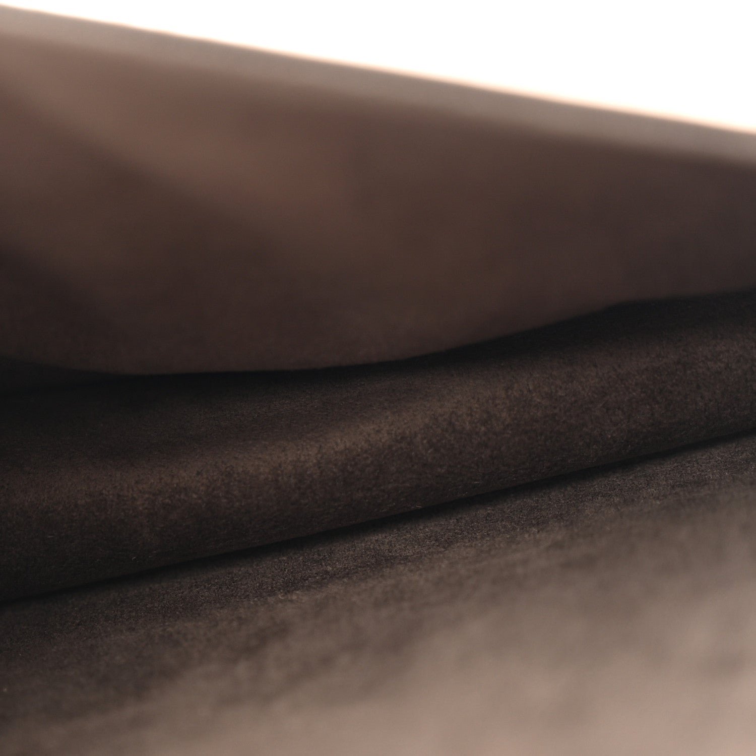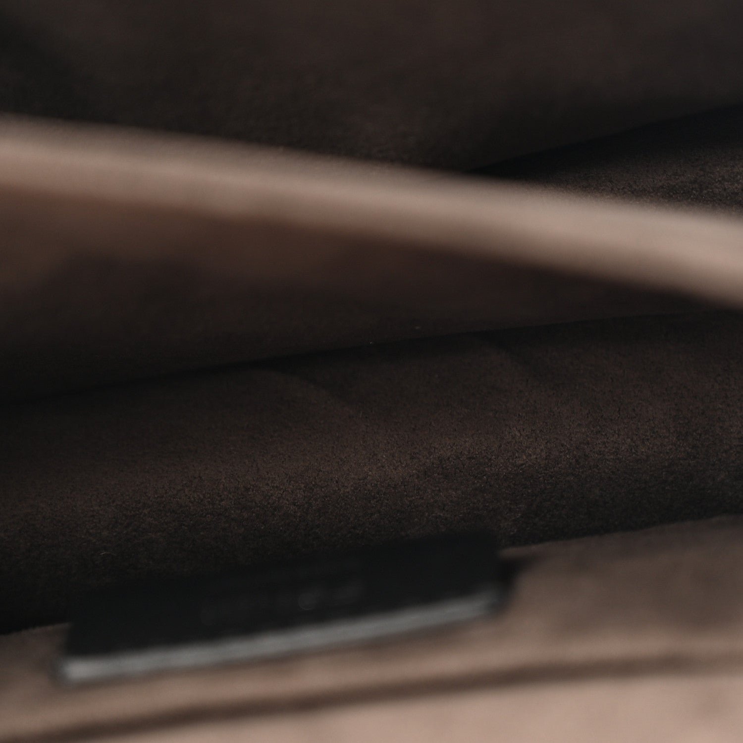 Interior: Microfiber or suede-effect lining with two main compartments divided by a stiff partition.