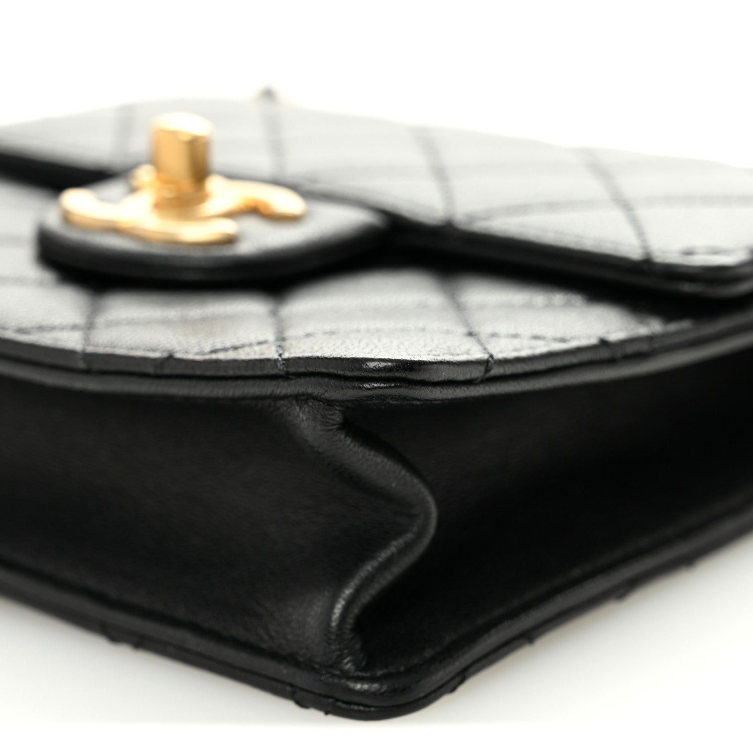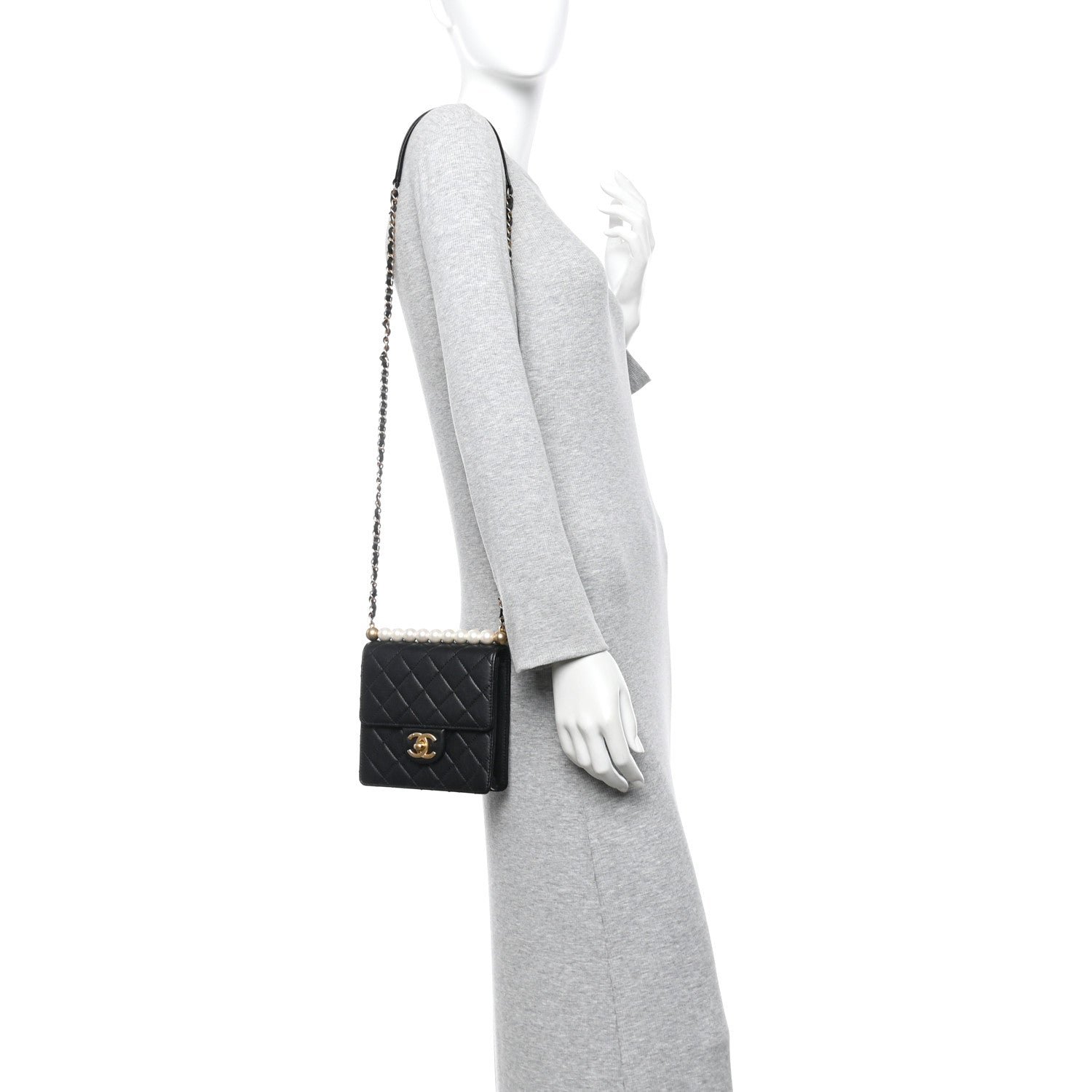 The Chanel Goatskin Quilted Chic Pearls Flap in Black with Gold Hardware is a distinctive, jeweled variation of the flap bag that debuted as part of the Cruise 2020 Collection. This model is celebrated for its unique decorative elements that elevate the classic silhouette with a touch of feminine ornamentation.
