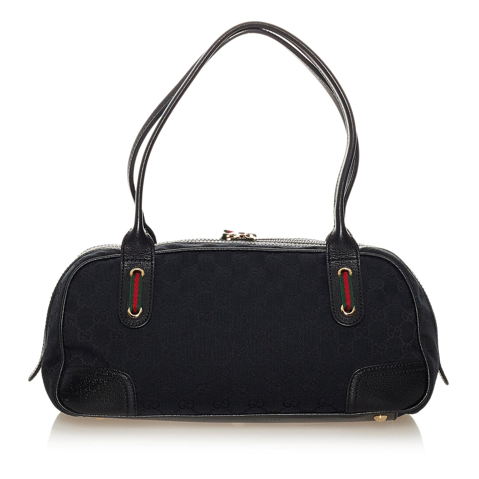 - Signature black GG canvas exterior with leather and calfskin accents