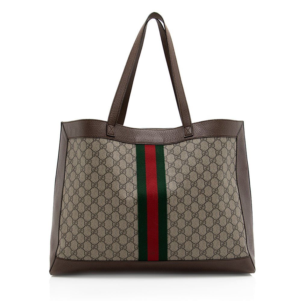 The Ophidia collection evokes the House’s heritage with the signature Web stripe and Double G emblem in light gold-toned finish. The styles are crafted from soft GG Monogram coated fabric, featuring green cotton lining inside.