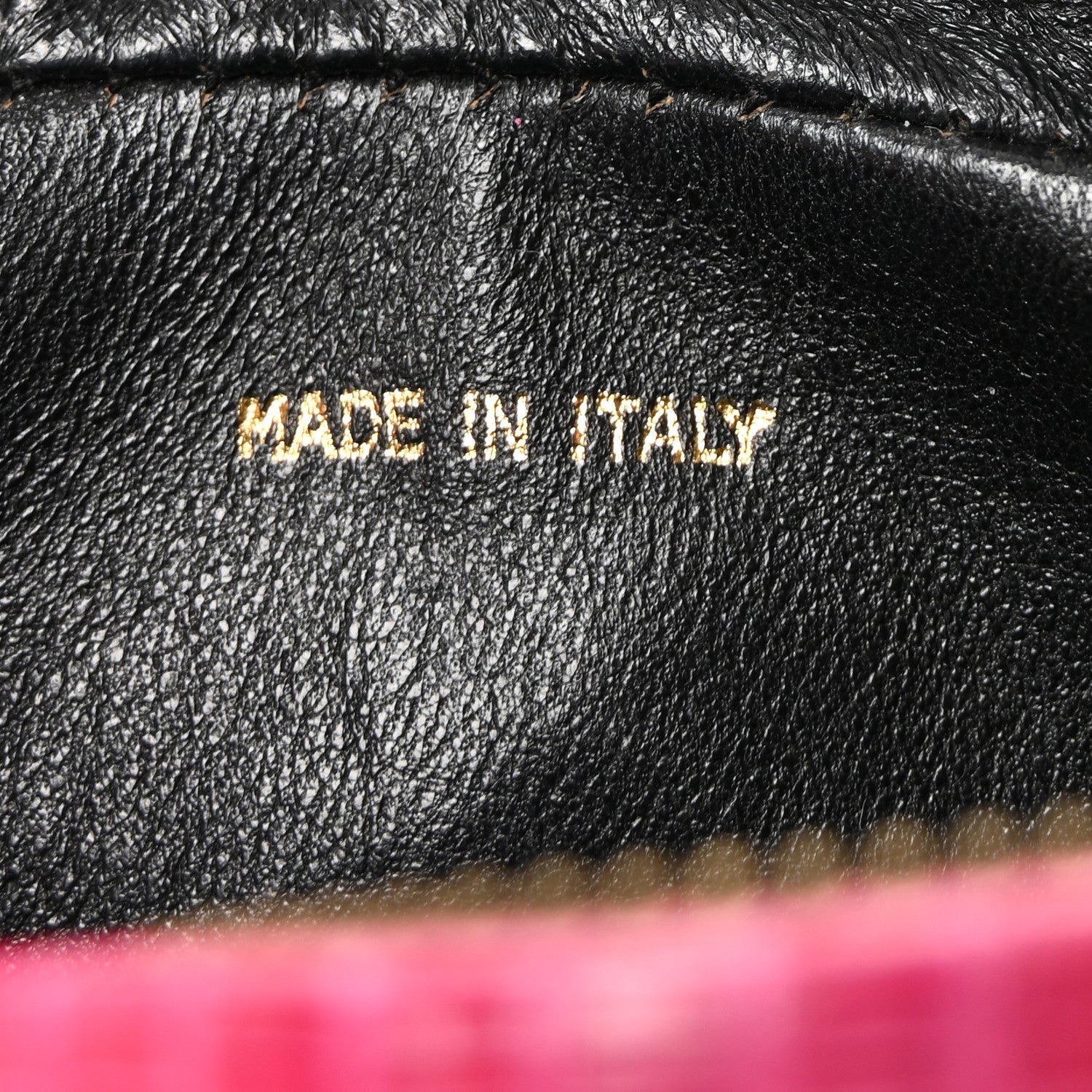 Strap: Equipped with a long interwoven gold chain and pink leather strap, allowing it to be worn as a shoulder bag or crossbody.
