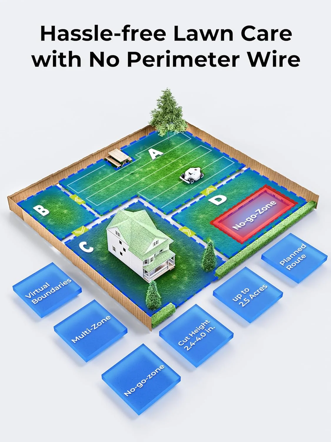 - No Perimeter Wires, No More Pains: Still in the pain of installing a boundary wire? Why not pick Mammotion robot mower- No perimeter wire is needed to setup or repair anymore. With the App, you can set the virtual boundaries in cm-level accuracy positioning and map your lawn, thanks to the advanced RTK-GNSS and Multi-Sensor Navigation System. You deserve a dynamic and flexible lawn and LUBA saves your time.