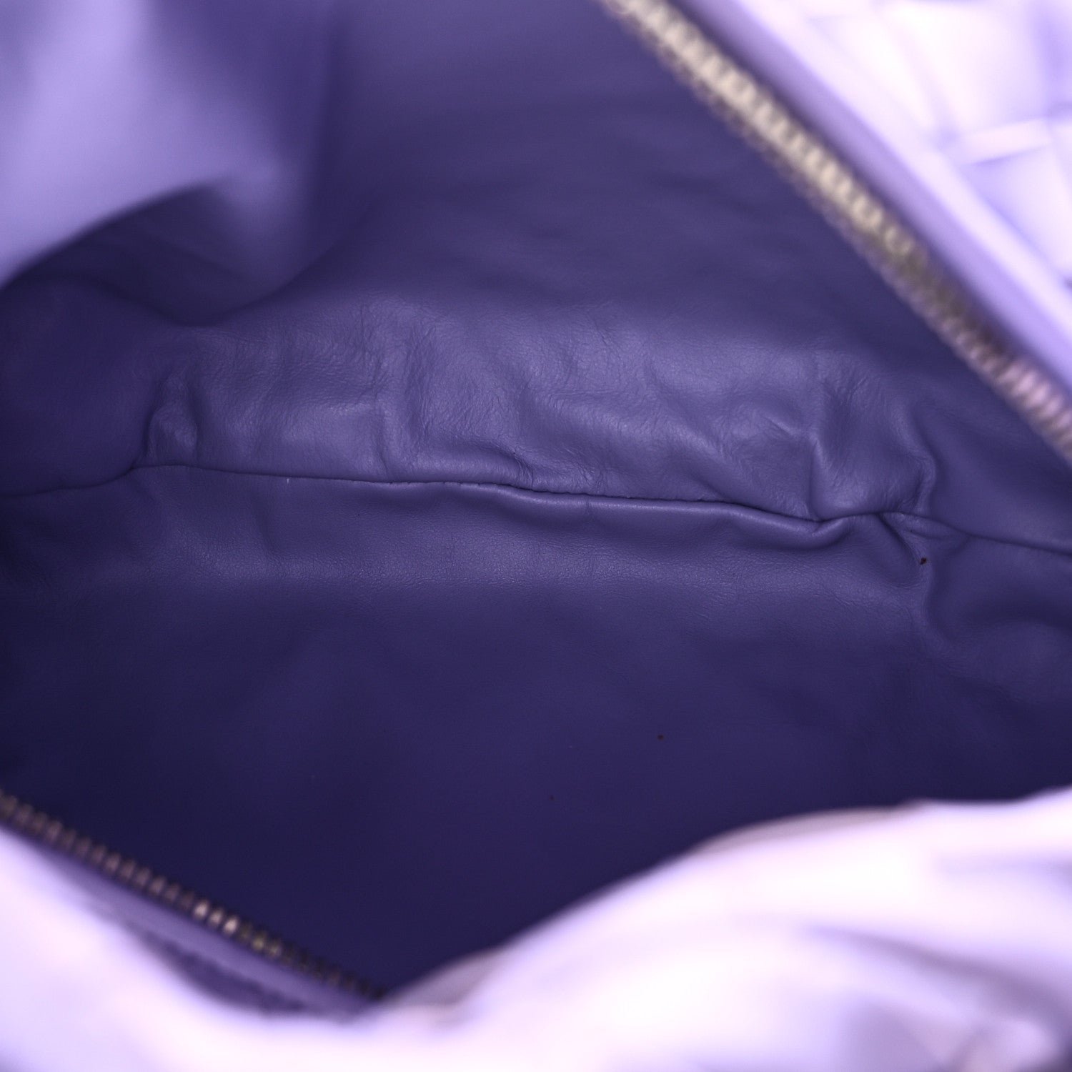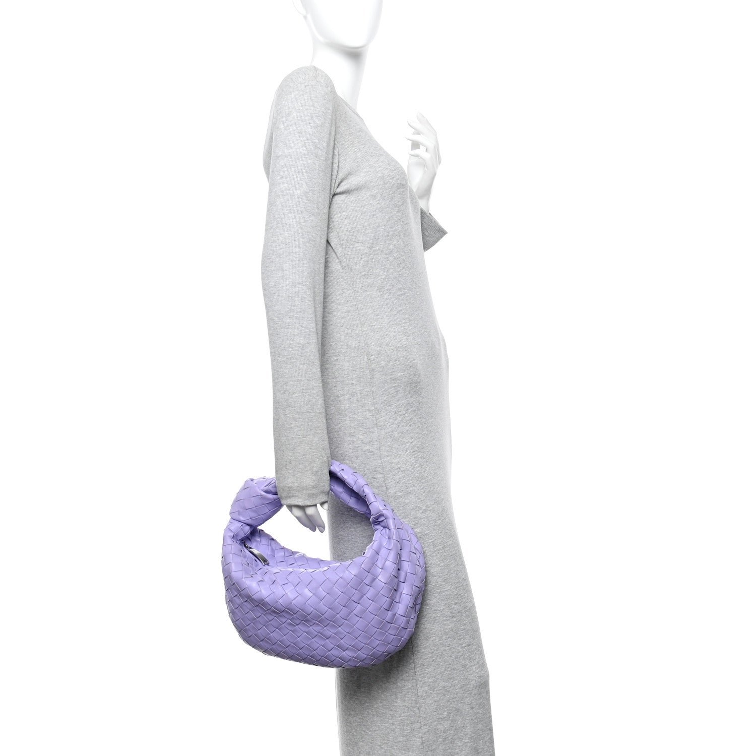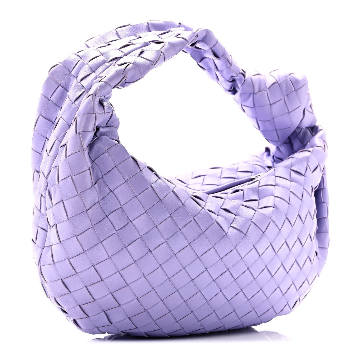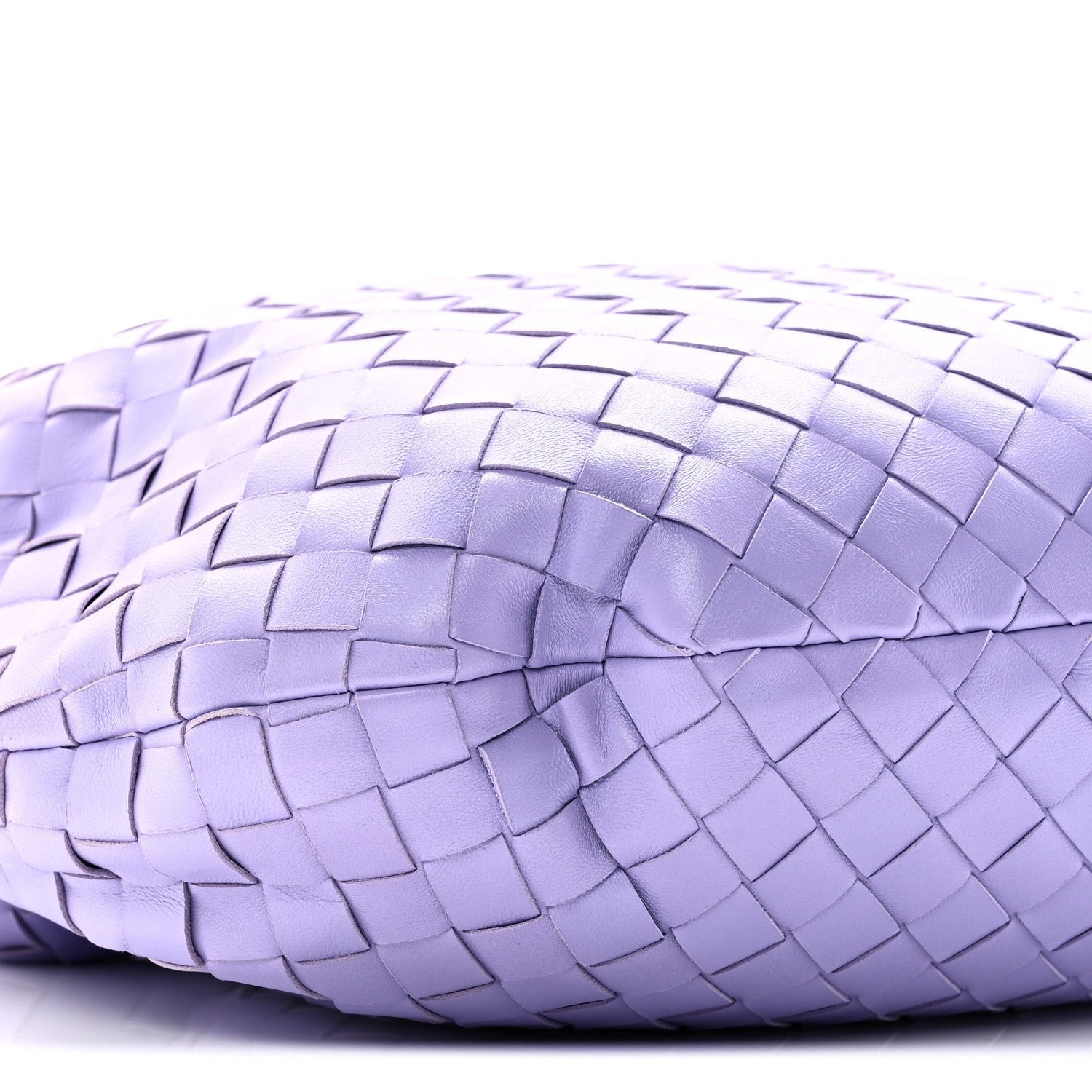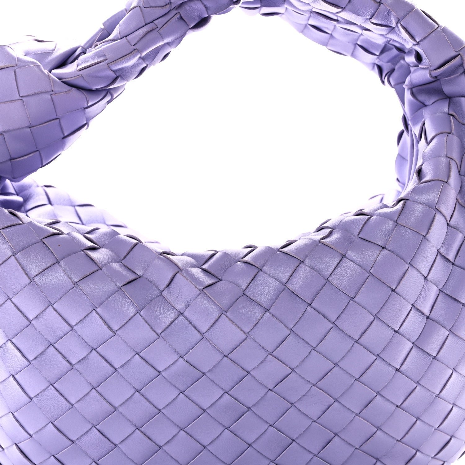 The Bottega Veneta Nappa Intrecciato Teen Jodie Hobo in Wisteria is a medium-sized, structural shoulder bag that perfectly captures the house’s “stealth luxury” aesthetic through its iconic seamless weaving and sculptural knot detail. The “Teen” size was introduced to bridge the gap between the compact Mini and the larger Small models, offering a practical capacity for daily essentials.