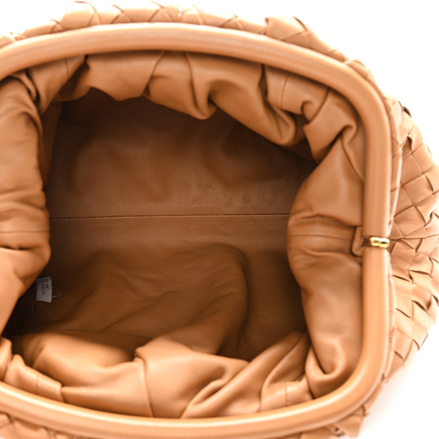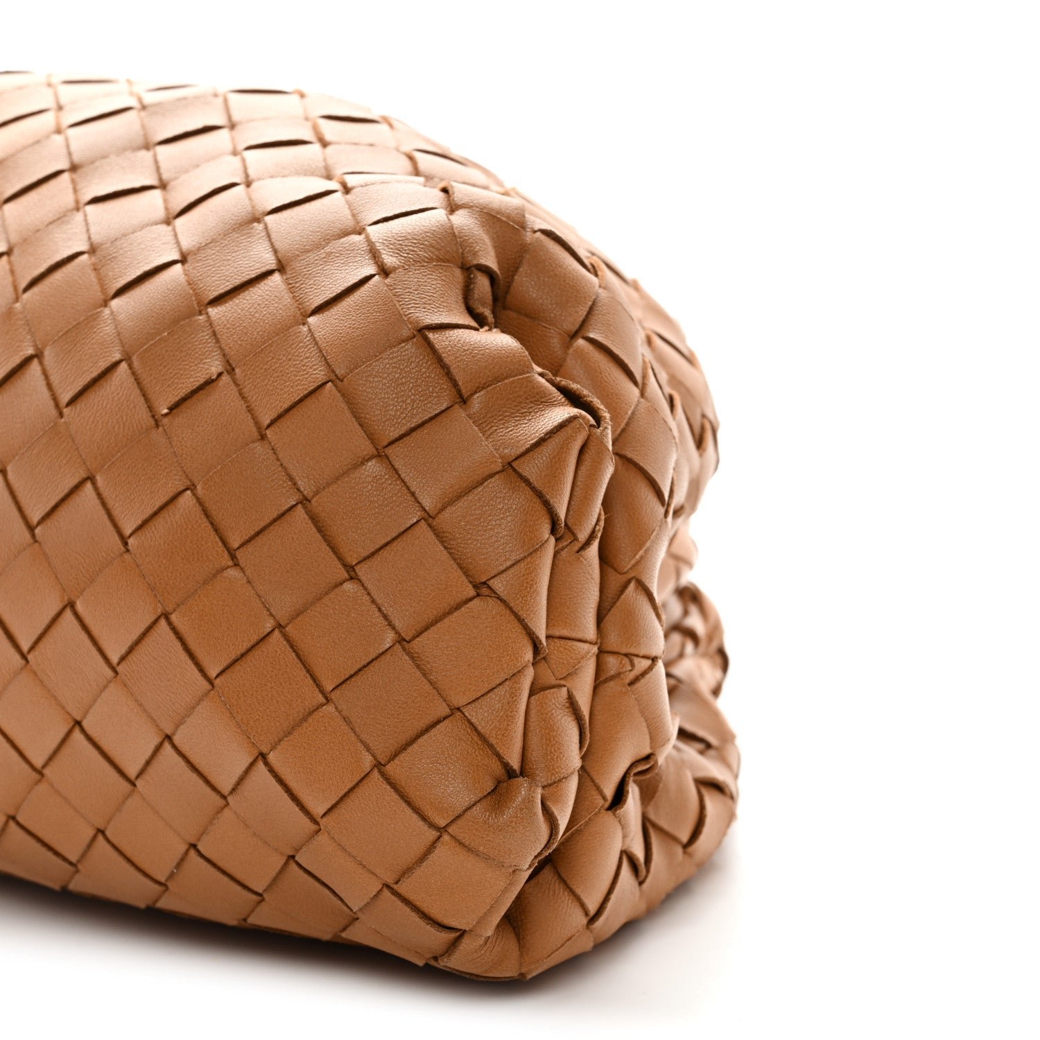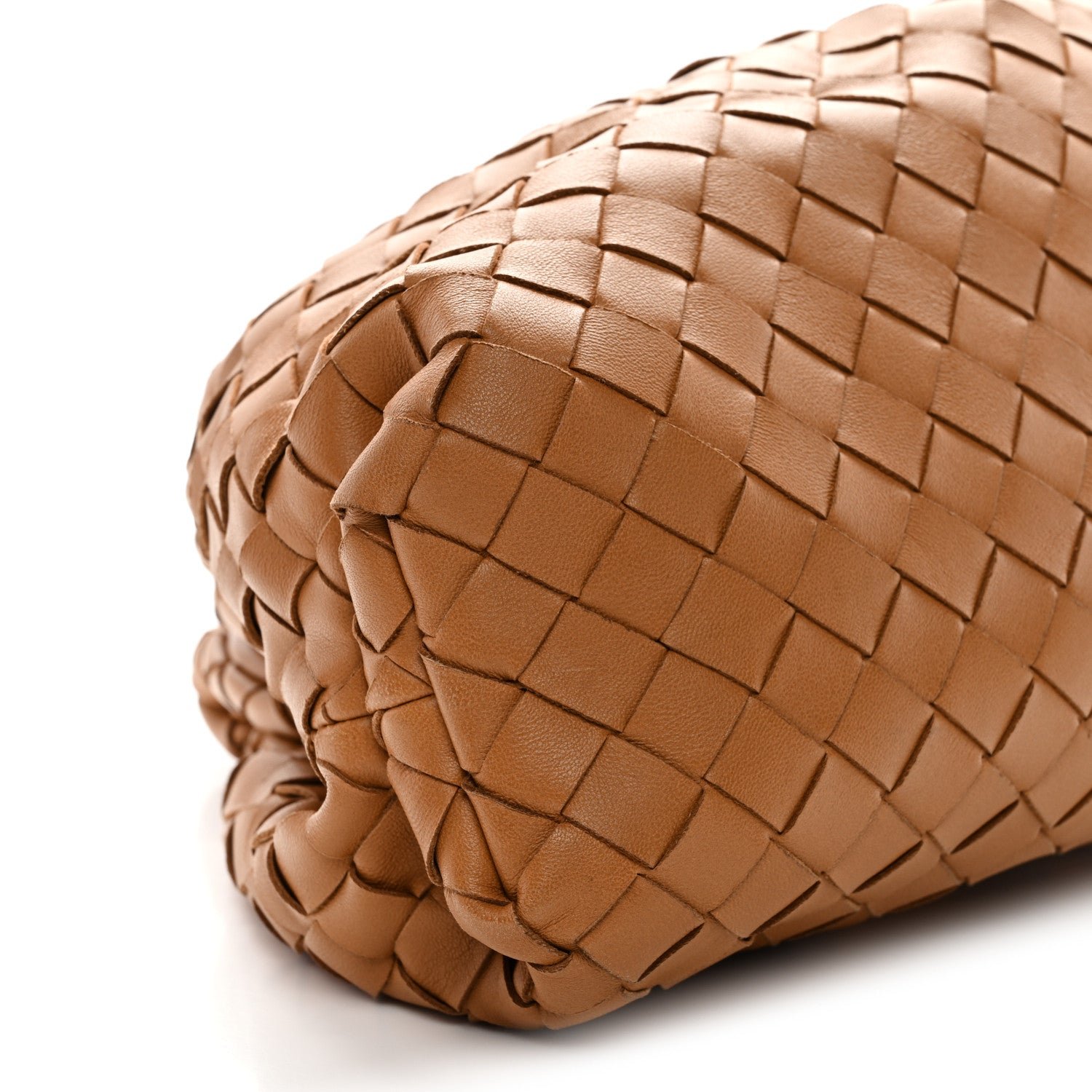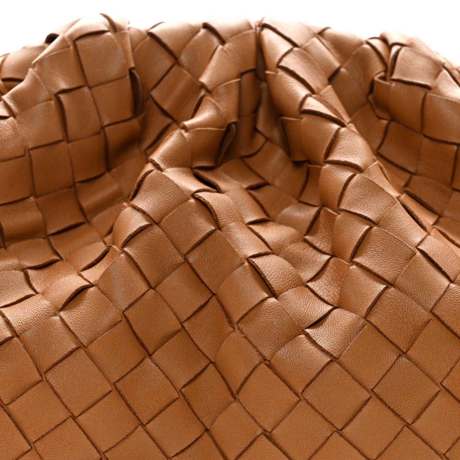 The Bottega Veneta Nappa Maxi Intrecciato The Pouch Oversized Clutch in Caramel is a contemporary house icon that fuses the brand’s traditional craftsmanship with a bold, oversized weave and a voluminous “cloud” silhouette.