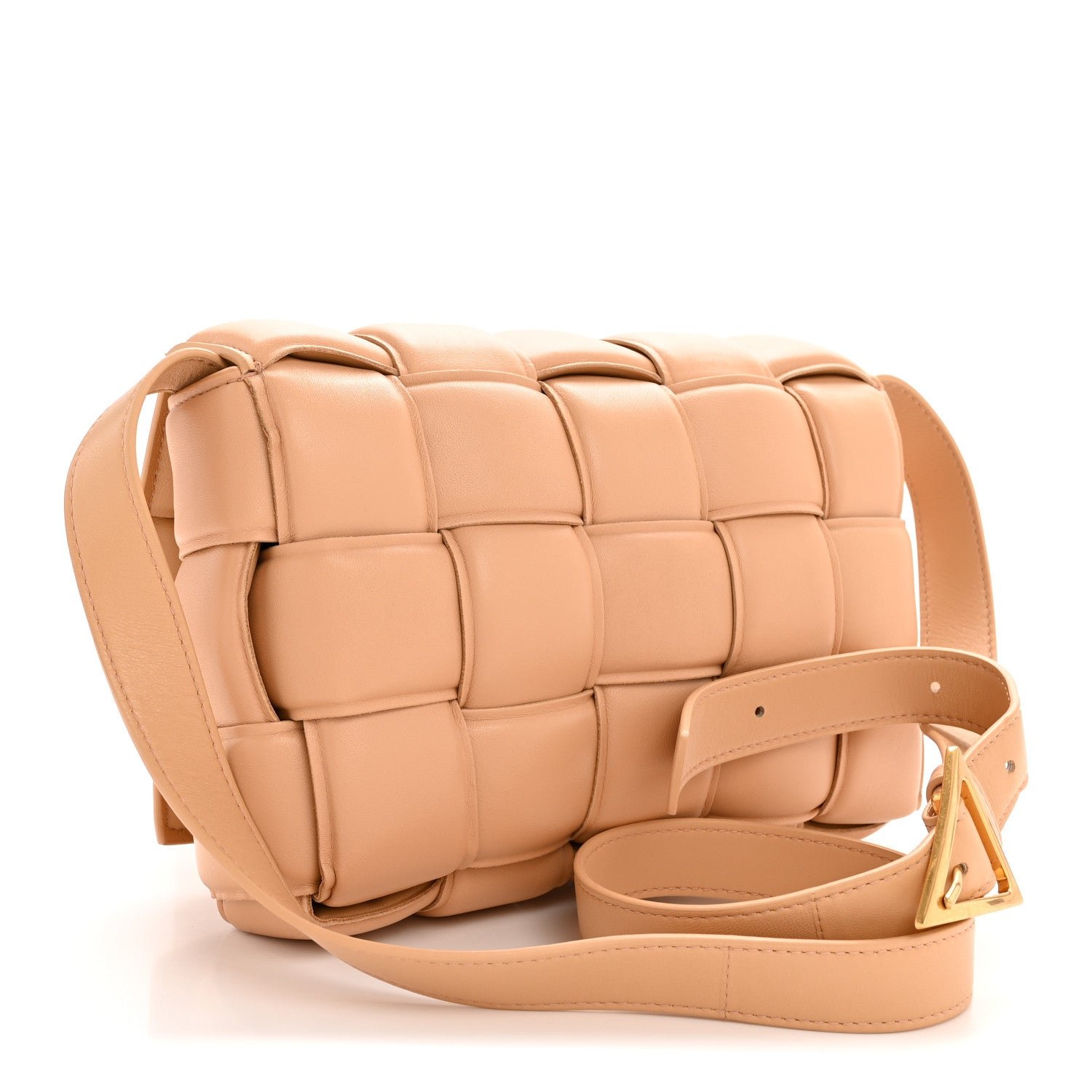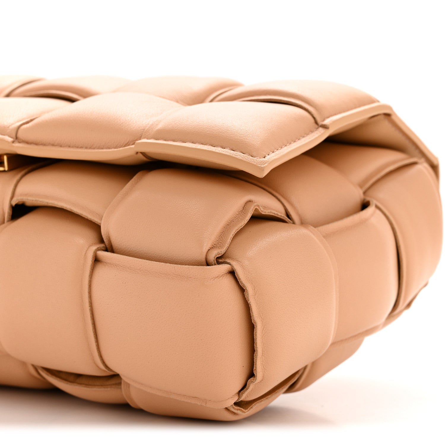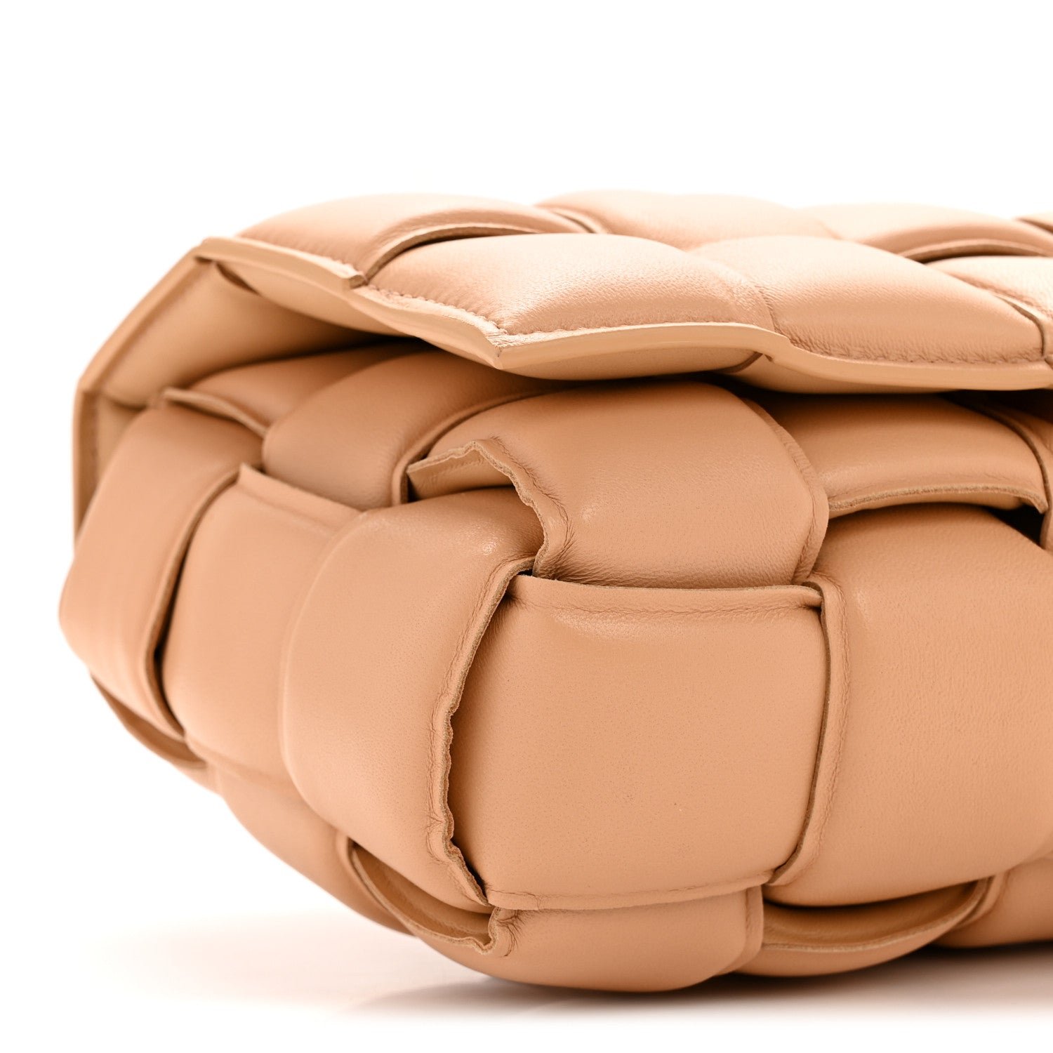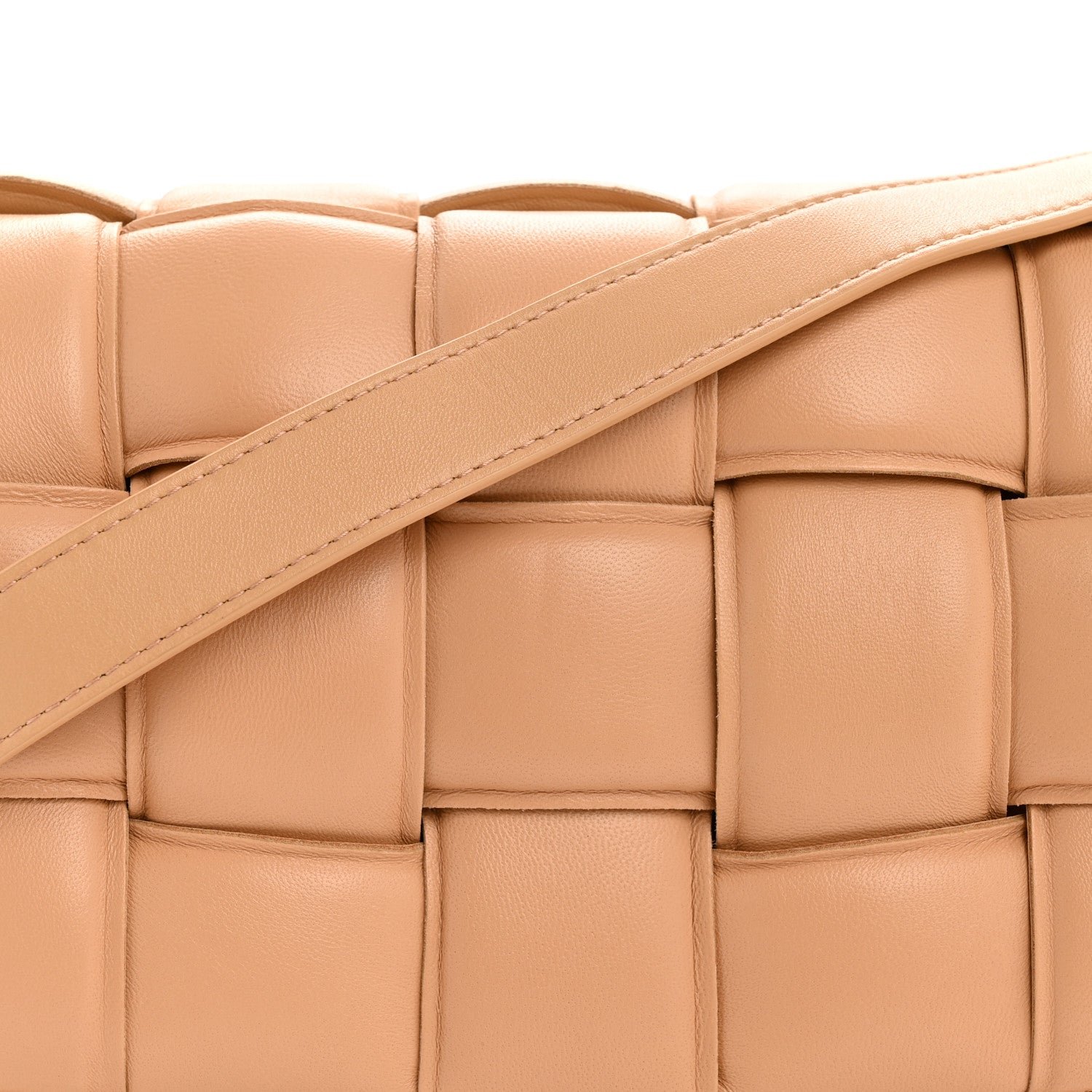 The Bottega Veneta Nappa Maxi Intreccio Padded Cassette Crossbody Bag in Almond is a definitive modern icon of the house, blending the classic Intrecciato weave with a bold, high-volume aesthetic.