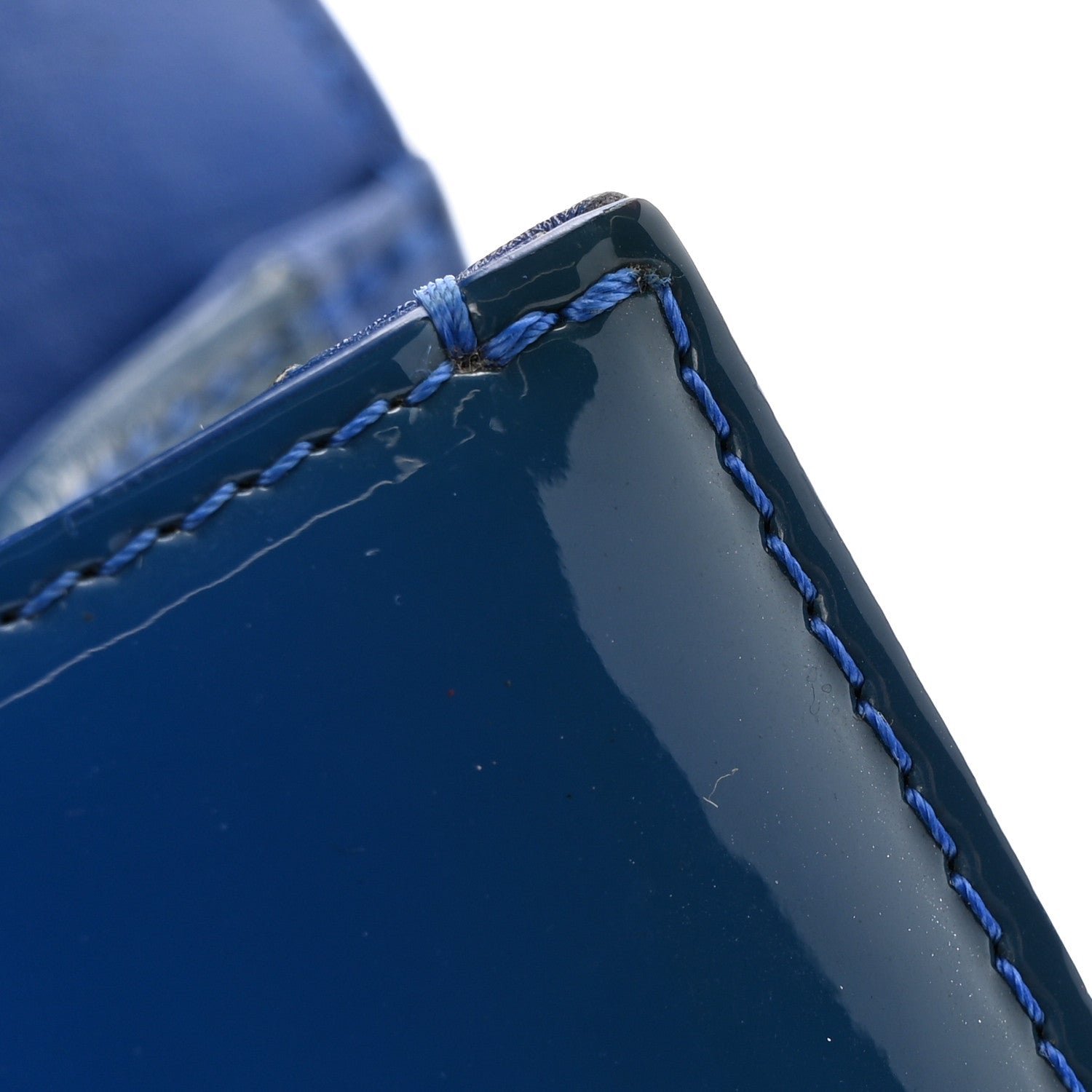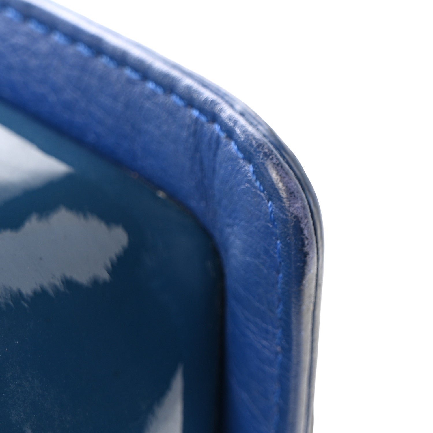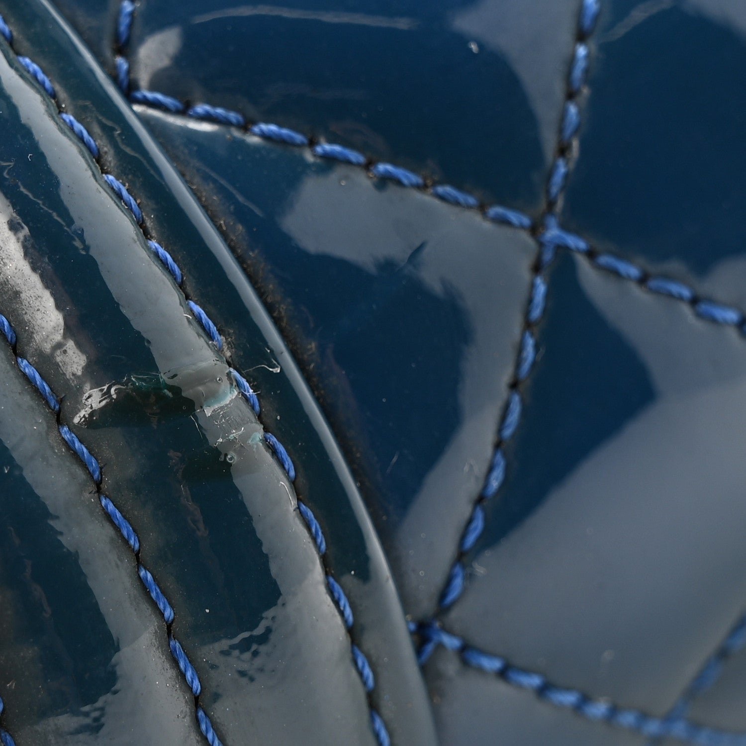 Exterior: Crafted from blue quilted patent calfskin, which provides a glass-like, reflective finish.