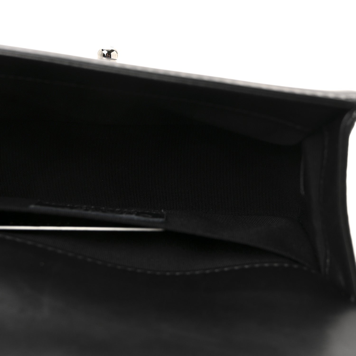 Material: Crafted from black diamond-quilted patent calfskin leather, providing a glass-like, reflective finish that is highly water-resistant.