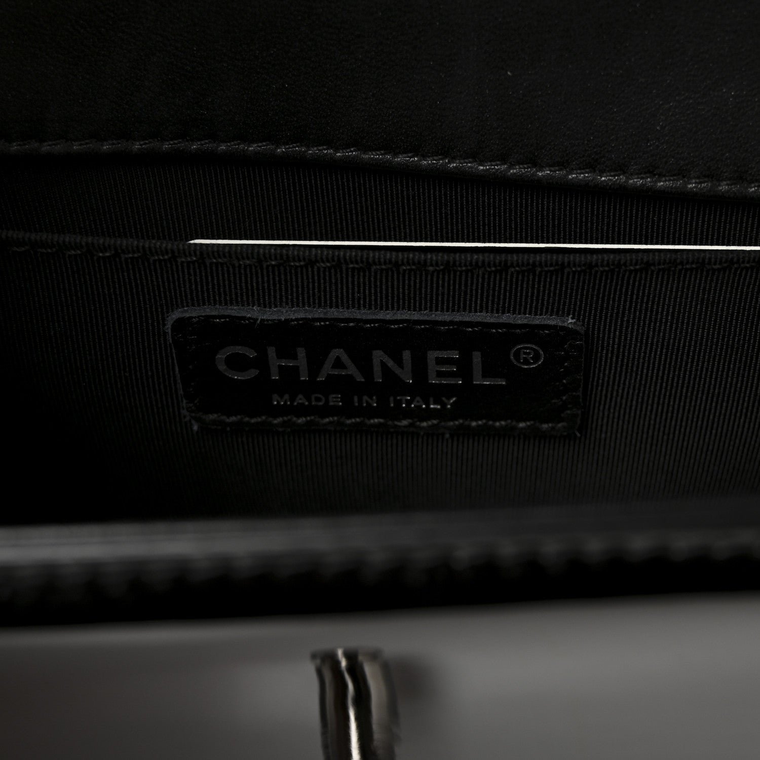 Quilting: Features a signature quilted center framed by a matching patent leather linear quilted border.