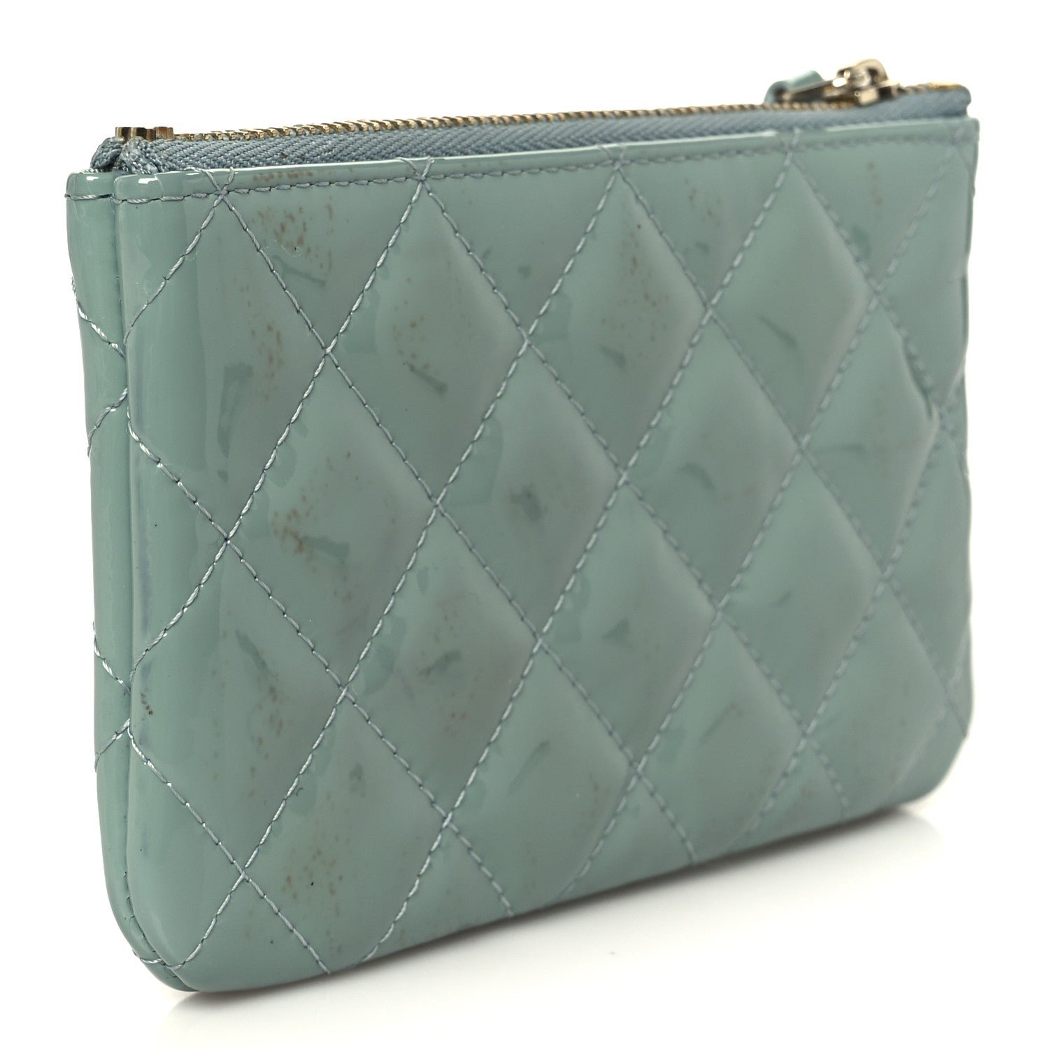 The Chanel Patent Quilted Small Cosmetic Case in light blue is a high-gloss, sophisticated accessory designed for both travel organization and daily luxury. Known for its glass-like finish and signature diamond quilting, this compact case is a seasonal staple within Chanel’s small leather goods collections.