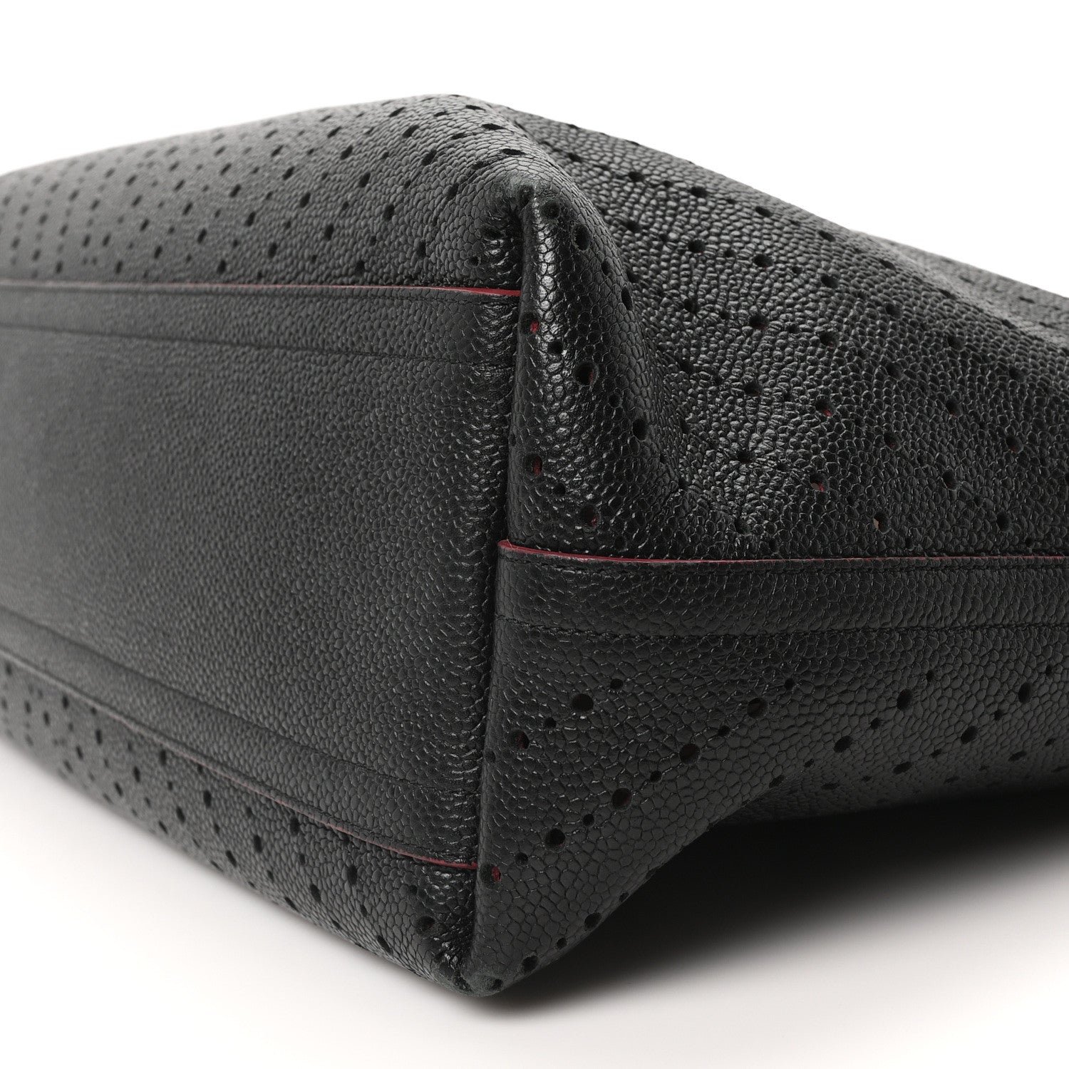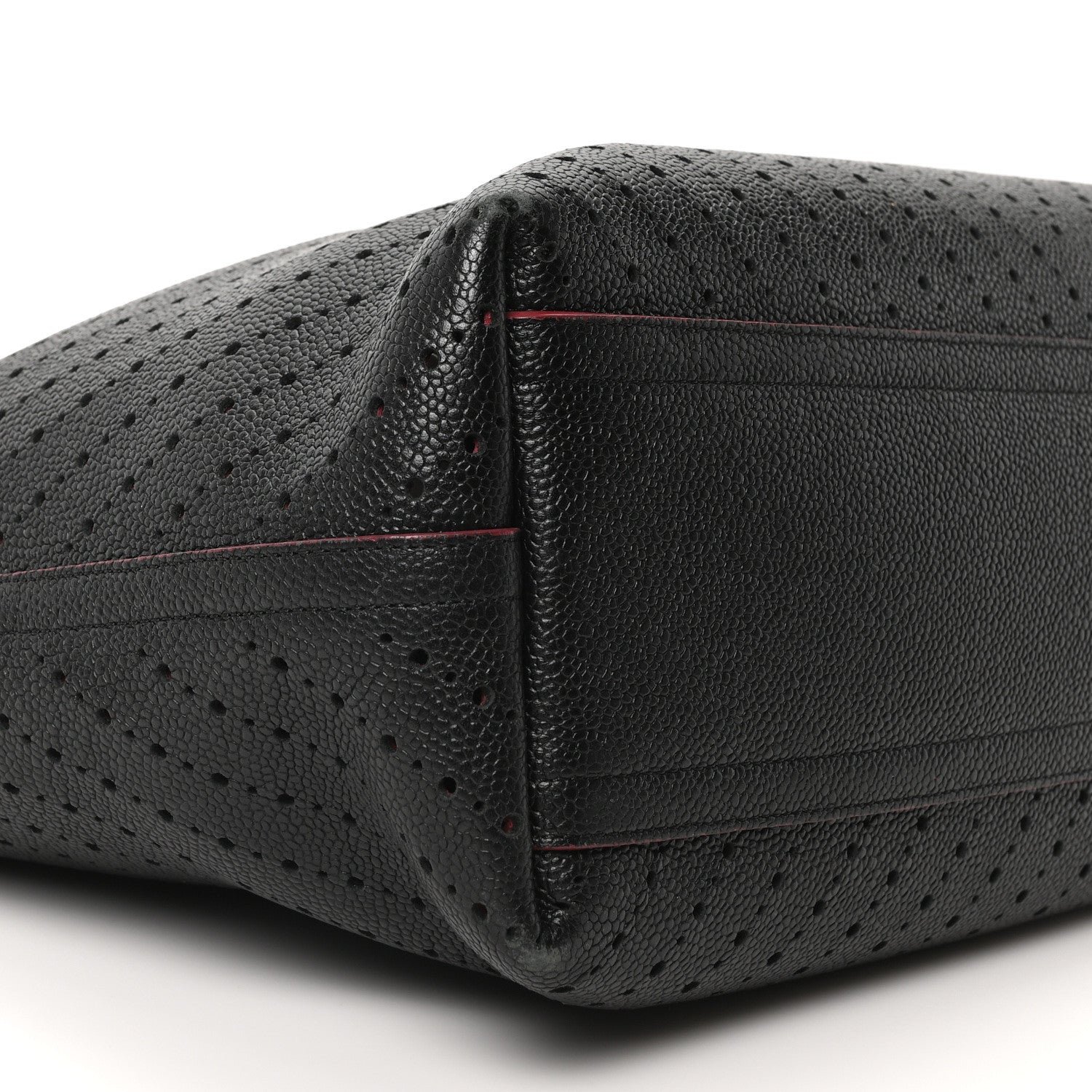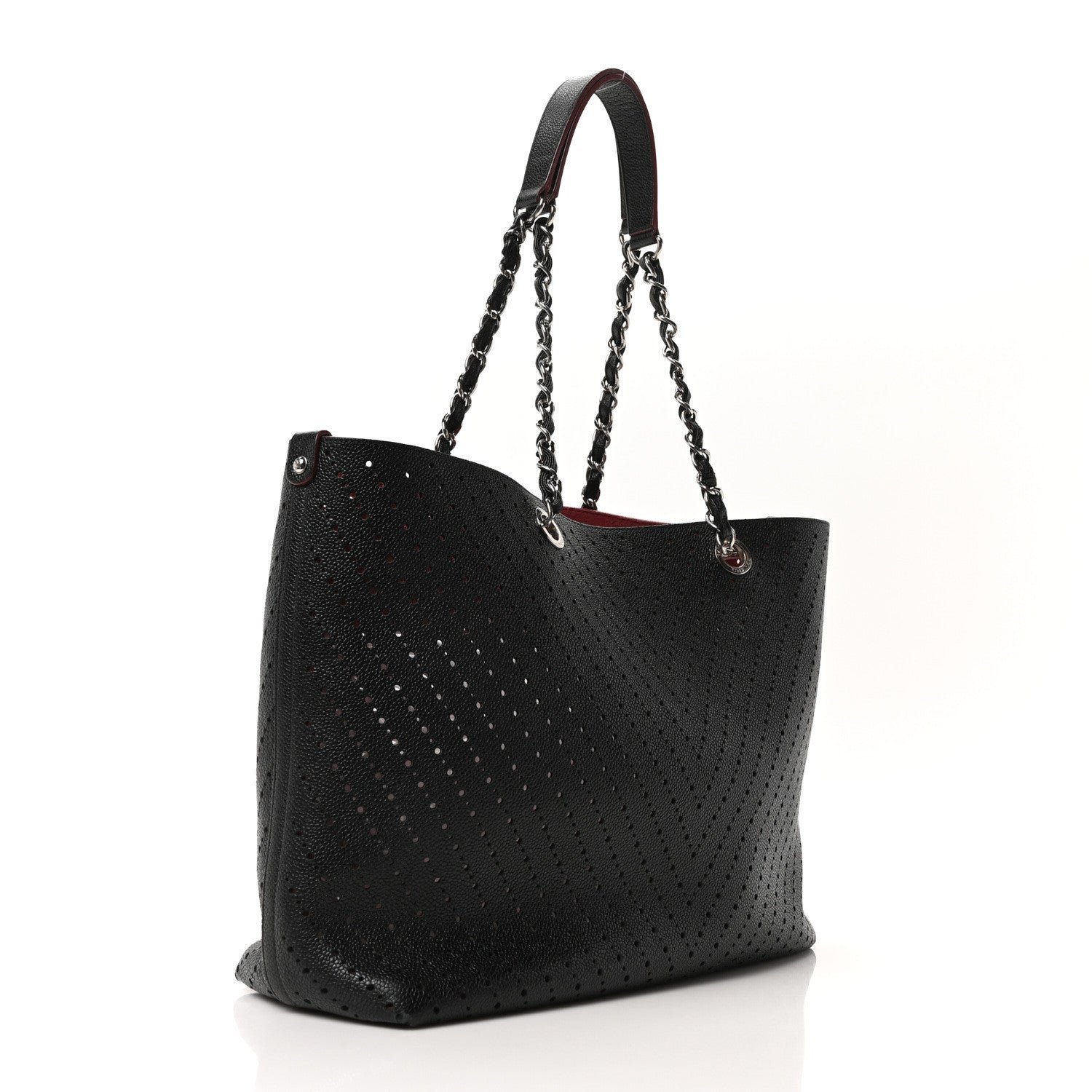 The Chanel Perforated Grained Calfskin Large Shopping Tote in black is a sophisticated, versatile “town-to-travel” bag known for its distinctive textured appearance and airy, modern feel. Primarily released as a seasonal specialty (notably around 2016–2017), this tote is appreciated for being significantly lighter than solid-leather Chanel shopping bags.