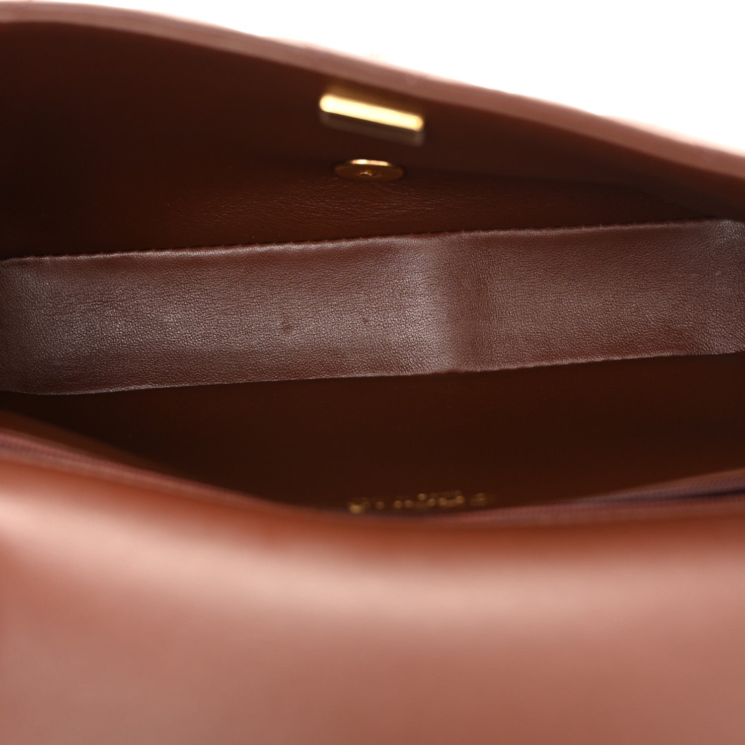 Hardware: Accented with polished gold-tone metal, featuring the iconic interlocking CC turn-lock closure on the front.
