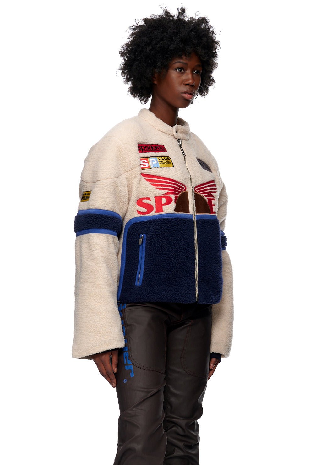 100% Polyester. Leather trim details. Customer SP5DER patches.