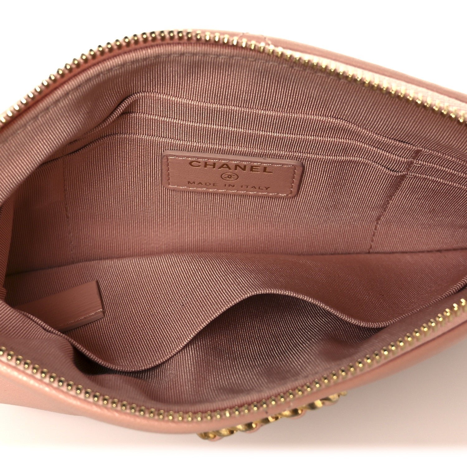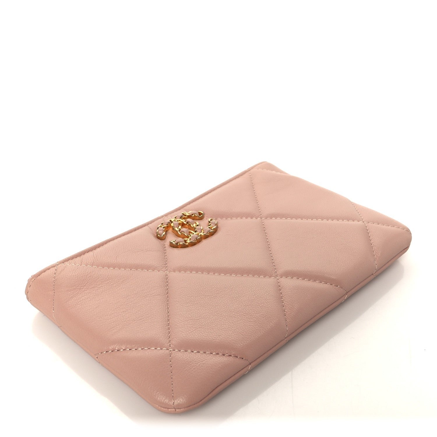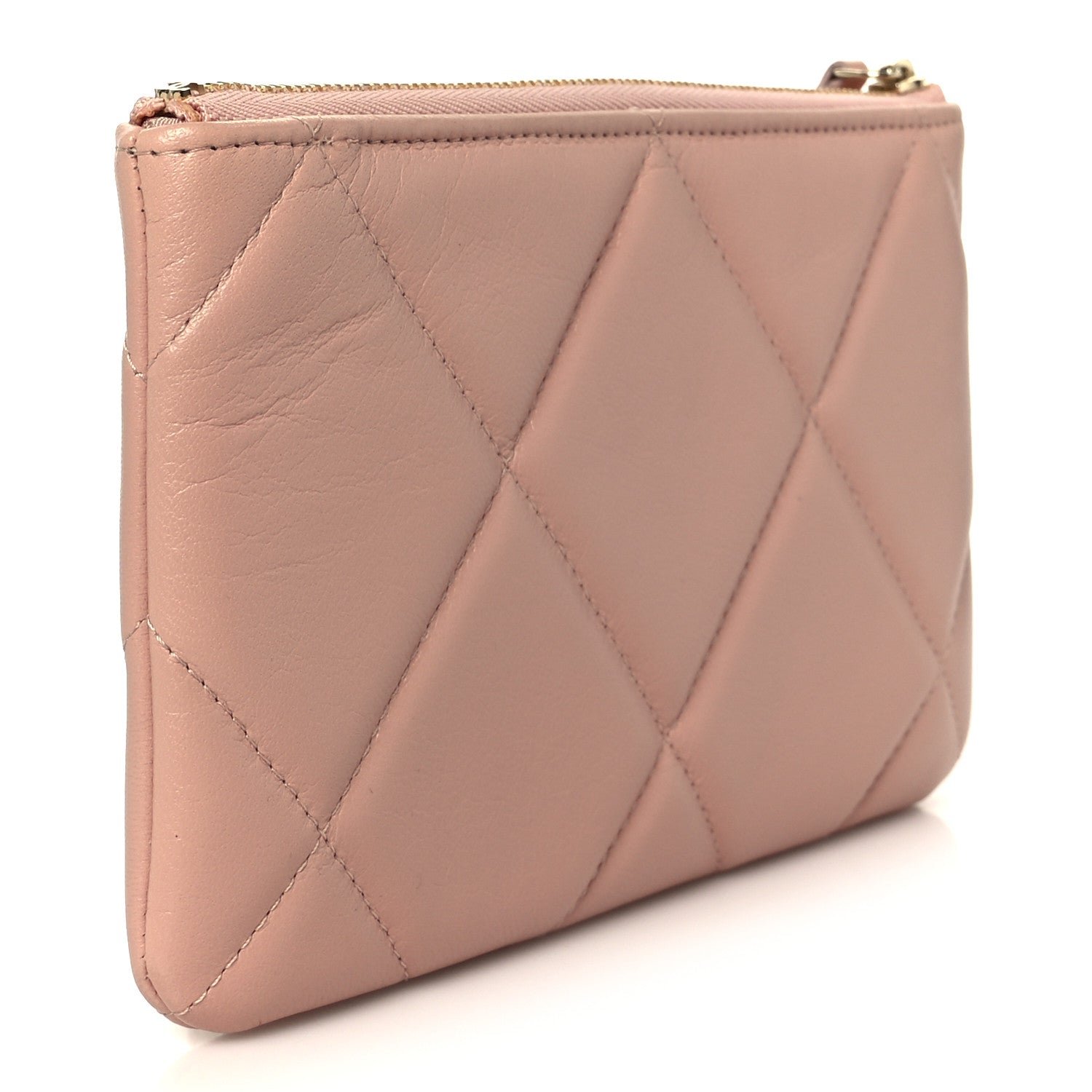The Shiny Goatskin Quilted Small Chanel 19 Pouch in pink is a sleek, versatile small leather good (SLG) that captures the signature “maximalist” aesthetic of the Chanel 19 line in a compact, portable format. Known for its oversized quilting and mixed-metal hardware, this pouch is designed to function as a large wallet, an evening clutch, or an organizational insert for larger bags.