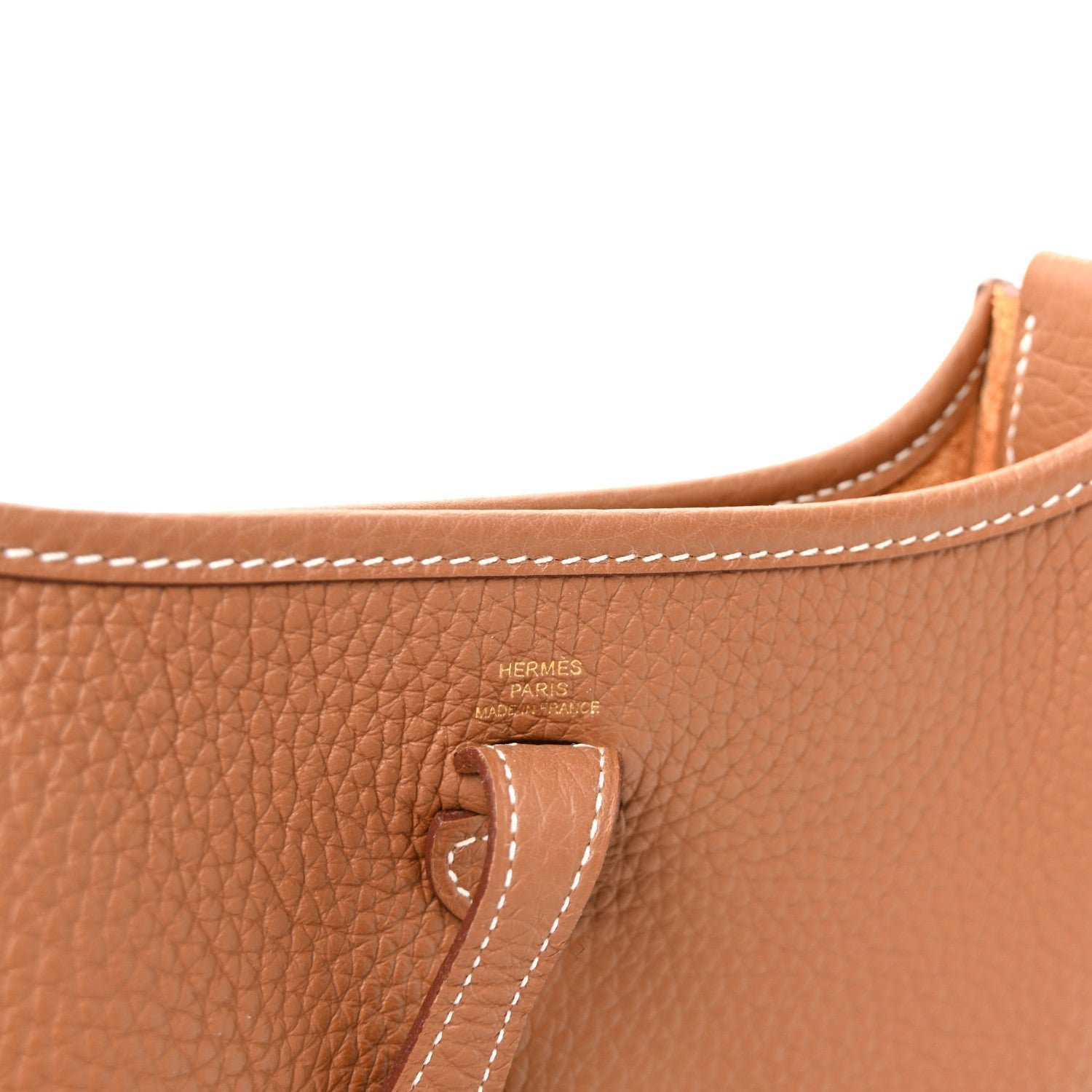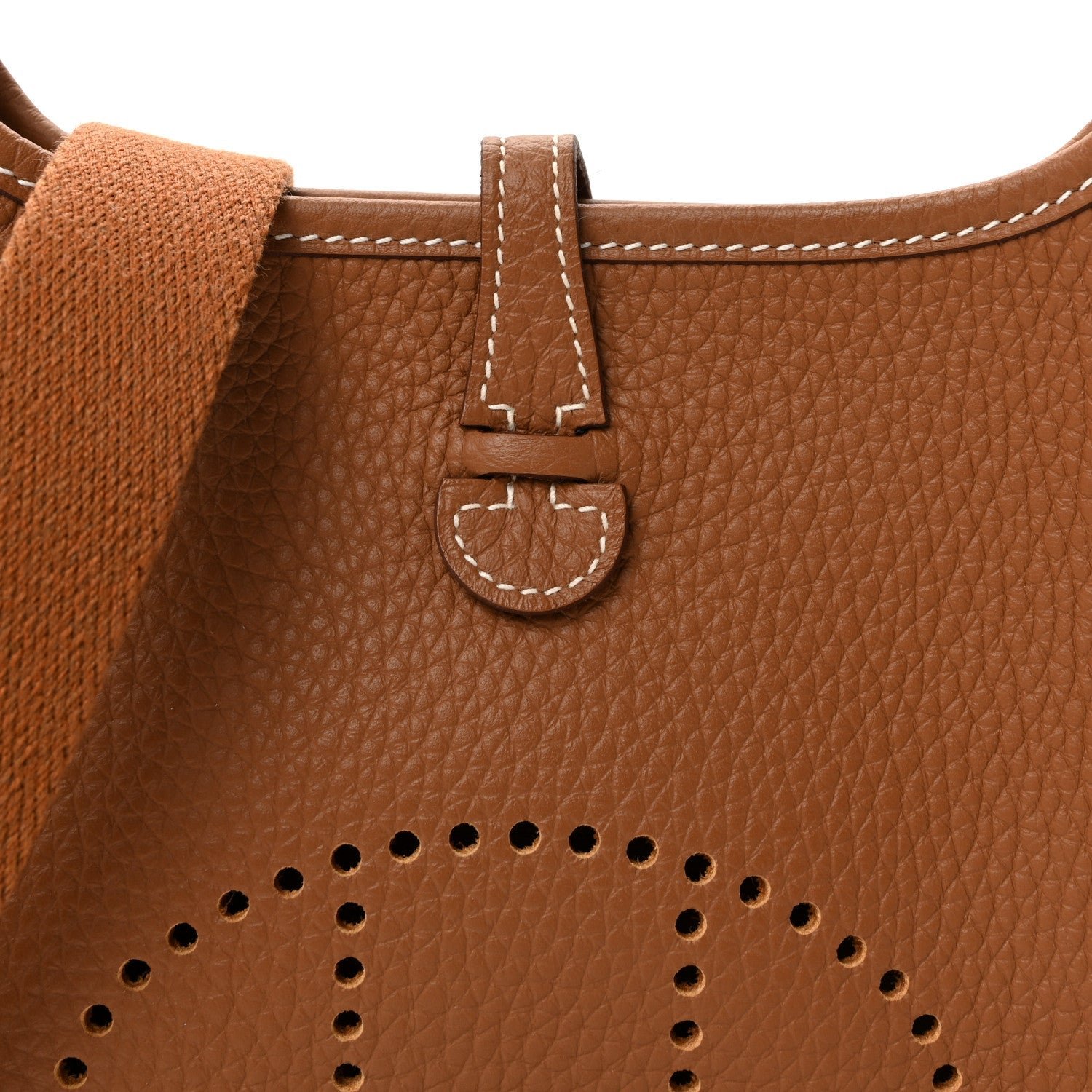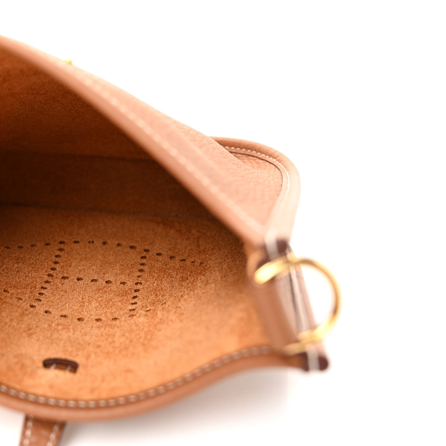 The Hermès Evelyne 16 TPM in Gold Taurillon Clemence is a globally recognized crossbody bag that combines the house’s equestrian heritage with a compact, functional design. As the smallest model in the Evelyne collection, this “TPM” (Très Petit Modèle) is celebrated for its lightweight, “hands-free” silhouette, making it an ideal choice for carrying strictly the essentials.
