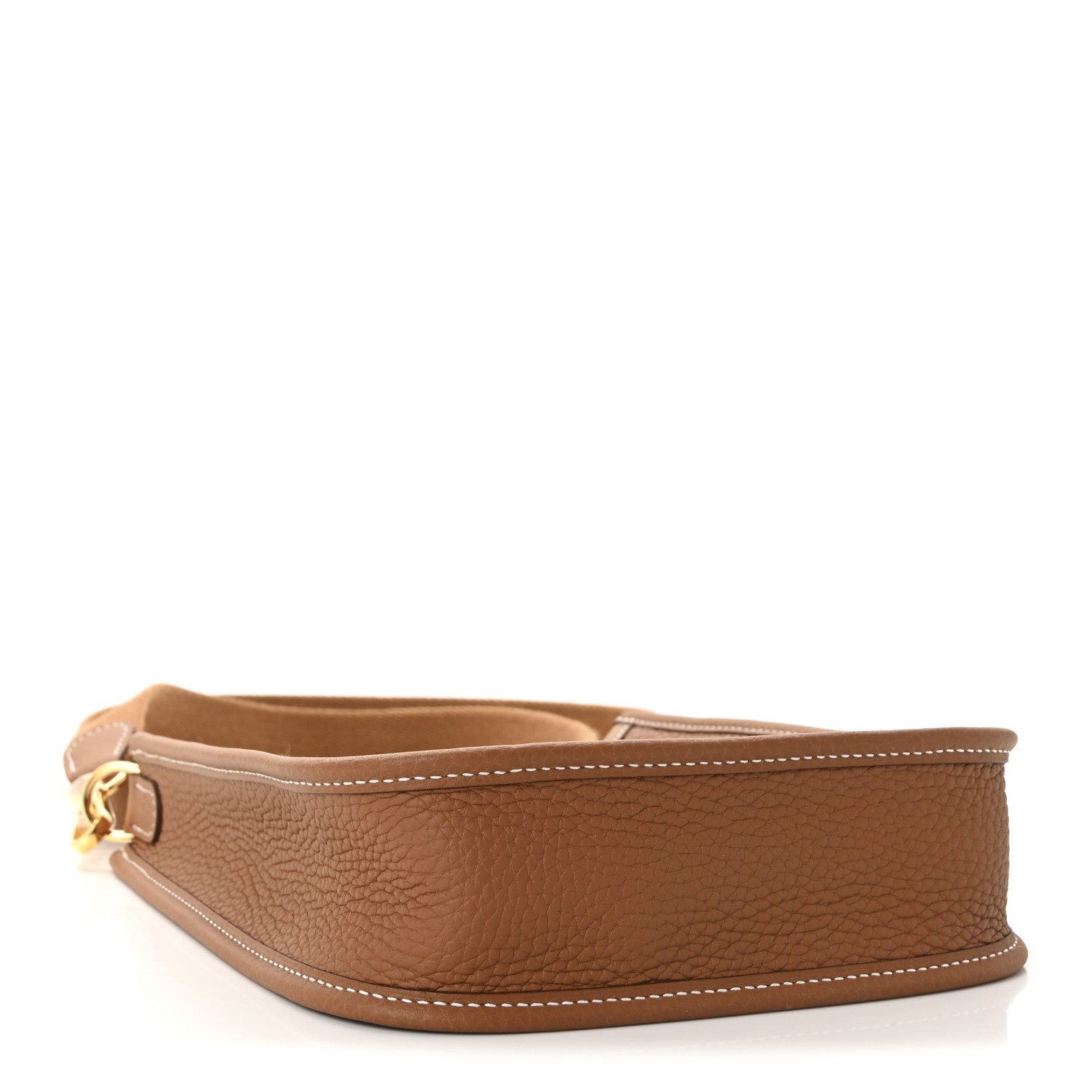 The Hermès Evelyne 16 TPM in Gold Taurillon Clemence is a globally recognized crossbody bag that combines the house’s equestrian heritage with a compact, functional design. As the smallest model in the Evelyne collection, this “TPM” (Très Petit Modèle) is celebrated for its lightweight, “hands-free” silhouette, making it an ideal choice for carrying strictly the essentials.