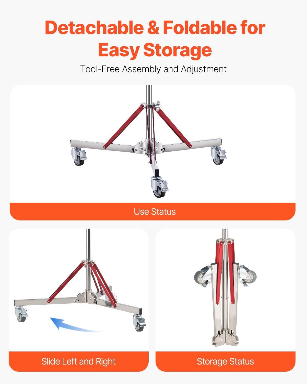 360° Casters, Effortless Movement: This heavy duty light stand comes with 360° rotating casters, making it easy to move heavy equipment across the floor without the need for lifting or dragging.
