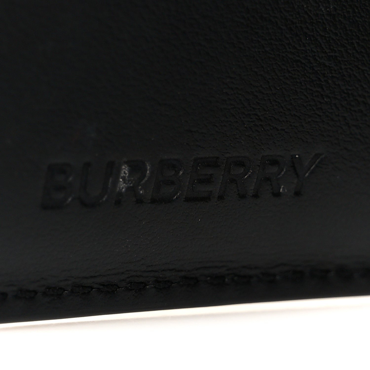 • The interior is accented with a debossed or silver foil-stamped Burberry logo.