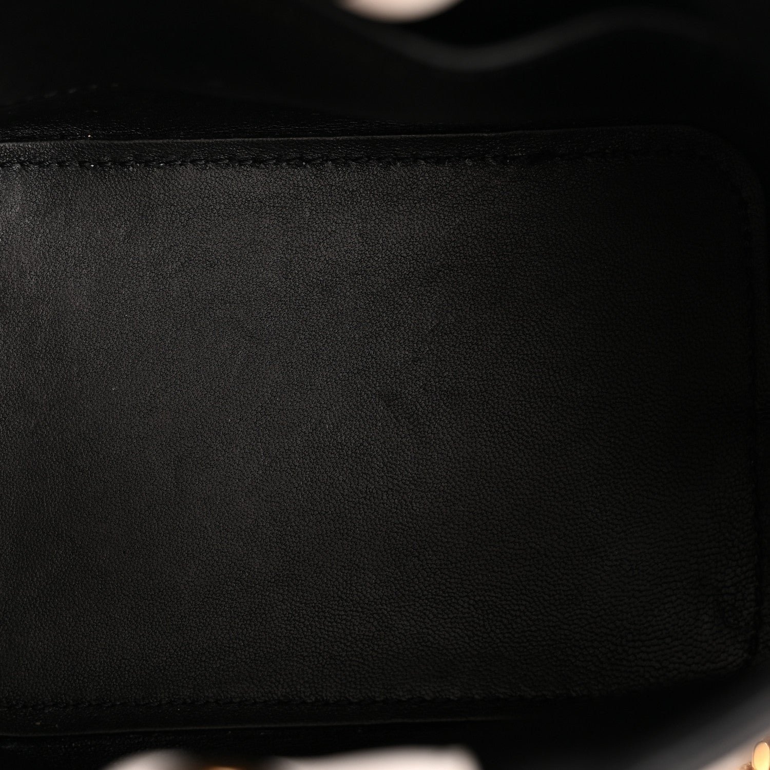 Interior: Lined with smooth leather or fabric. It features a drawstring or open-top closure depending on the specific seasonal variation, with a single main compartment.