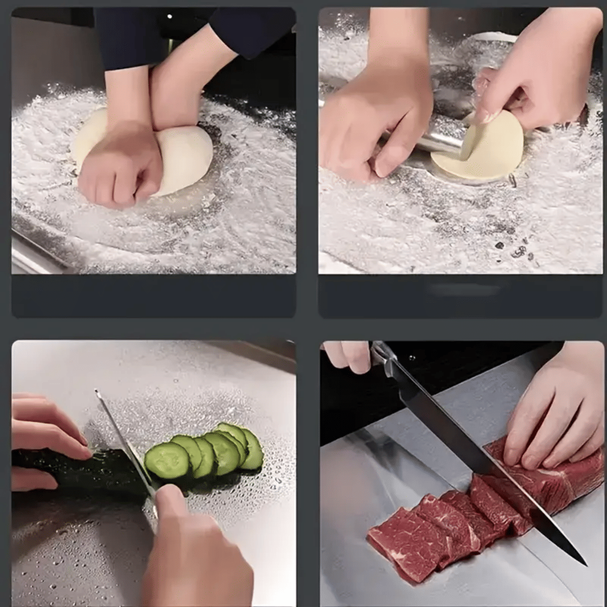 [EXCLUSIVELY SELECTED, HIGH-QUALITY MATERIALS]Our chopping boards for kitchen is made of food-grade 304 stainless steel, which is made of 4 layers of special compression process. It is more textured and durable than ordinary stainless steel cutting boards, with high temperature resistance and long service life.